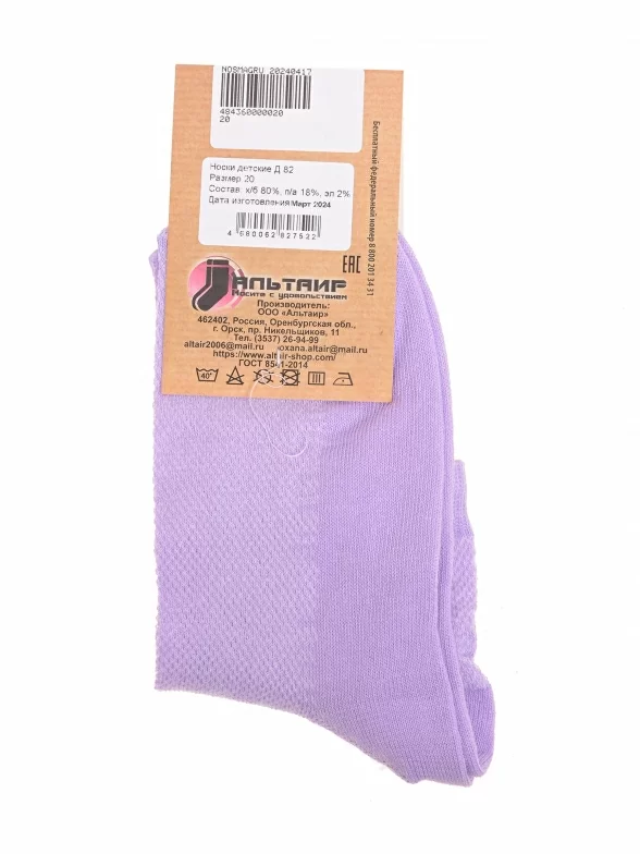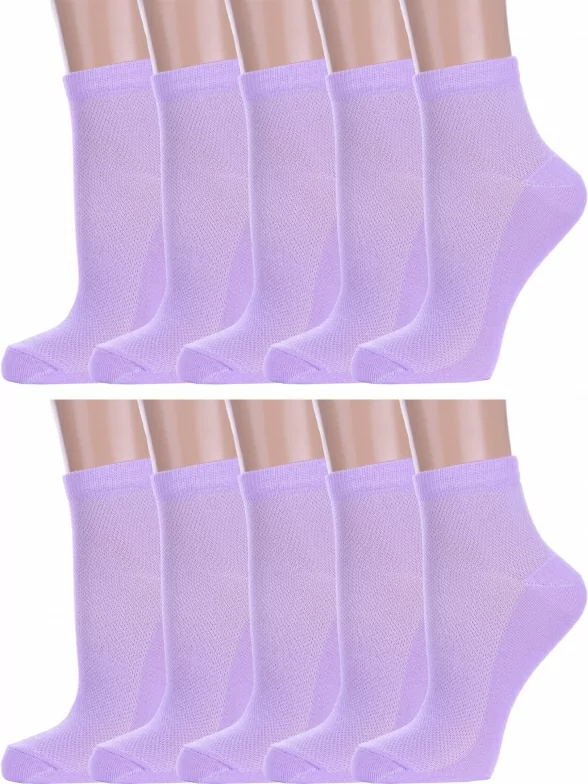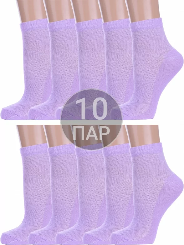 Комплект детских носков из 10 пар, летние, укороченные, цвет сиреневый, в сеточку, классические, возможно бесшовные, принт (рисунок): однотонный, без рисунков/узоров, состав: 80% хлопок, 18% полиамид, 2% эластан, арт. 10-Д82. Производитель «ООО Альтаир, г. Орск, Оренбургская обл, Россия» под брендом «Альтаир».