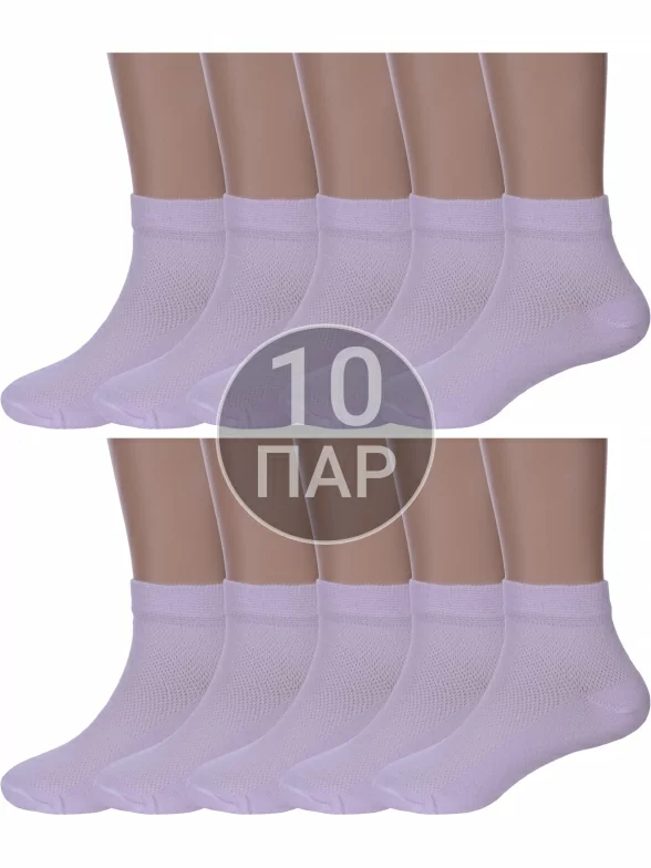 Комплект детских носков из 10 пар, летние, укороченные, цвет светло-сиреневый, в сеточку, шов обычный (не бесшовные), состав: 80% хлопок, 18% полиамид, 2% эластан, арт. 10-Д82. Производитель «ООО Альтаир, г. Орск, Оренбургская обл, Россия» под брендом «Альтаир».