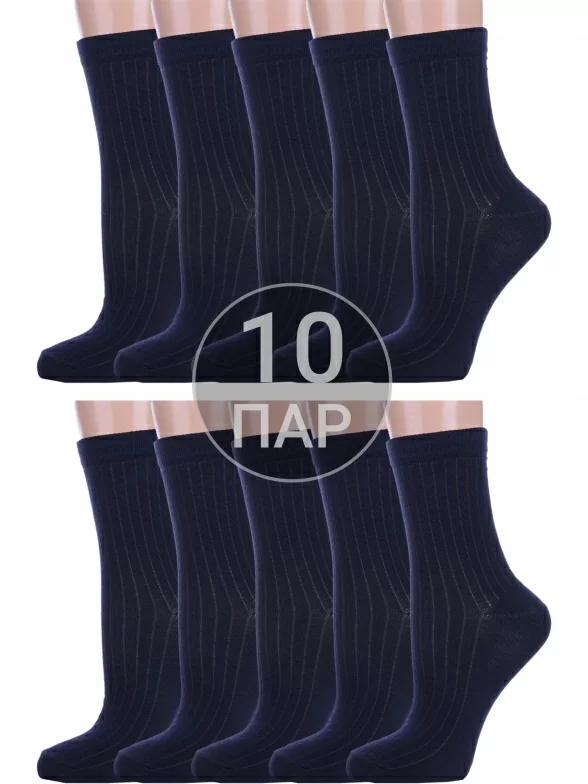 Комплект детских носков из 10 пар, круглогодичные, укороченные, цвет темно-синие, классические, шов обычный (не бесшовные), принт (рисунок): в рубчик, однотонный, без рисунков/узоров, состав: 82% хлопок, 16% полиамид, 2% эластан, арт. 10-М20. Производитель «ООО Альтаир, г. Орск, Оренбургская обл, Россия» под брендом «Альтаир».