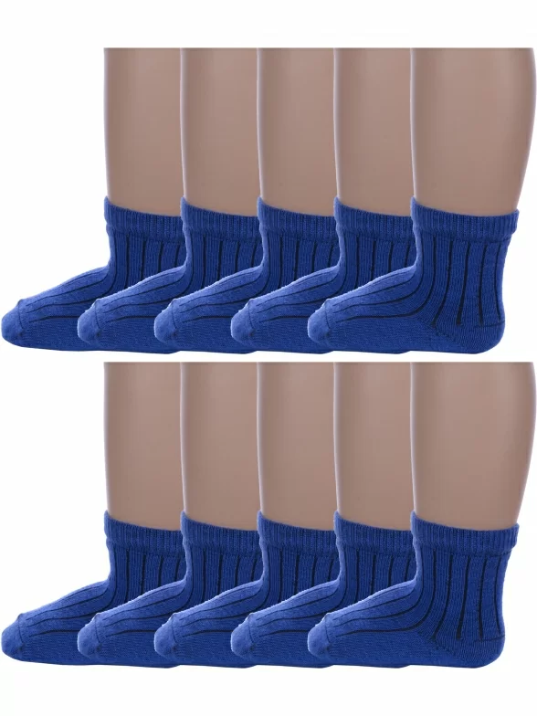 Комплект детских носков из 10 пар, круглогодичные, укороченные, цвет васильковый, классические, шов обычный (не бесшовные), принт (рисунок): в рубчик, однотонный, с узором, состав: 90% хлопок, 8% полиамид, 2% эластан, арт. 10-М20. Производитель «ООО Альтаир, г. Орск, Оренбургская обл, Россия» под брендом «Альтаир».
