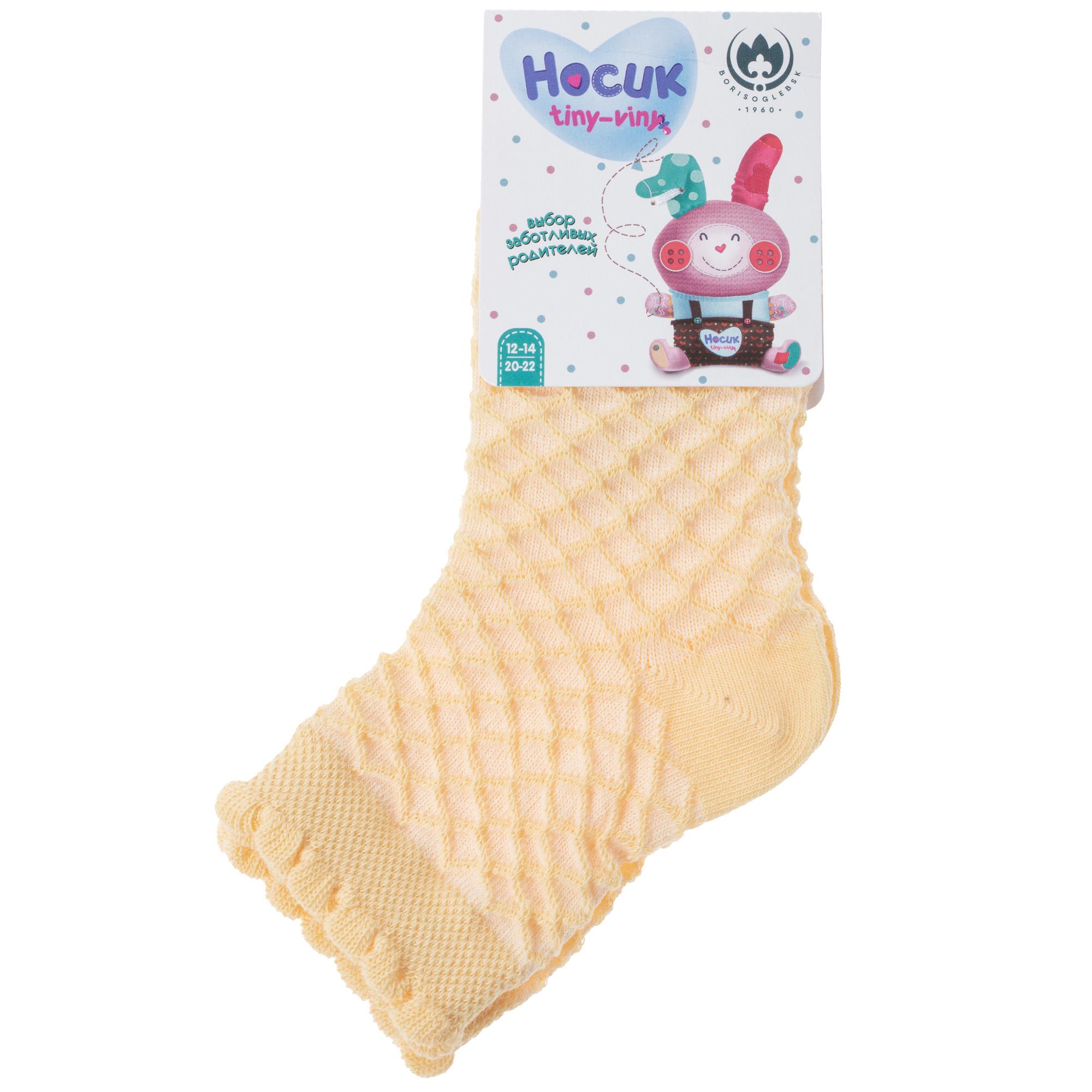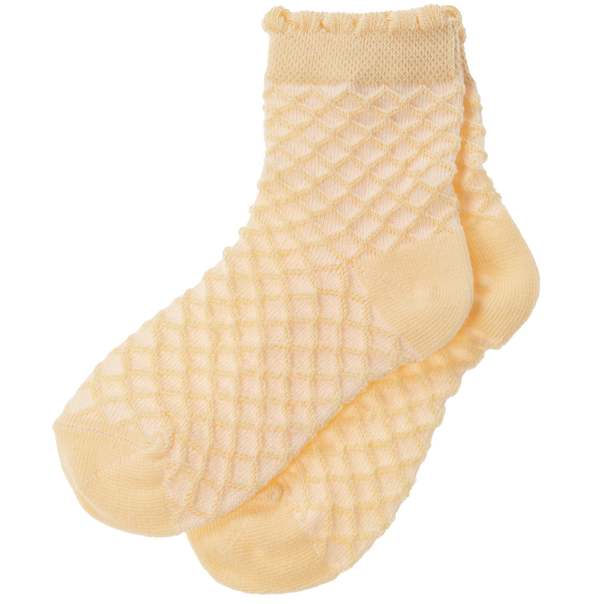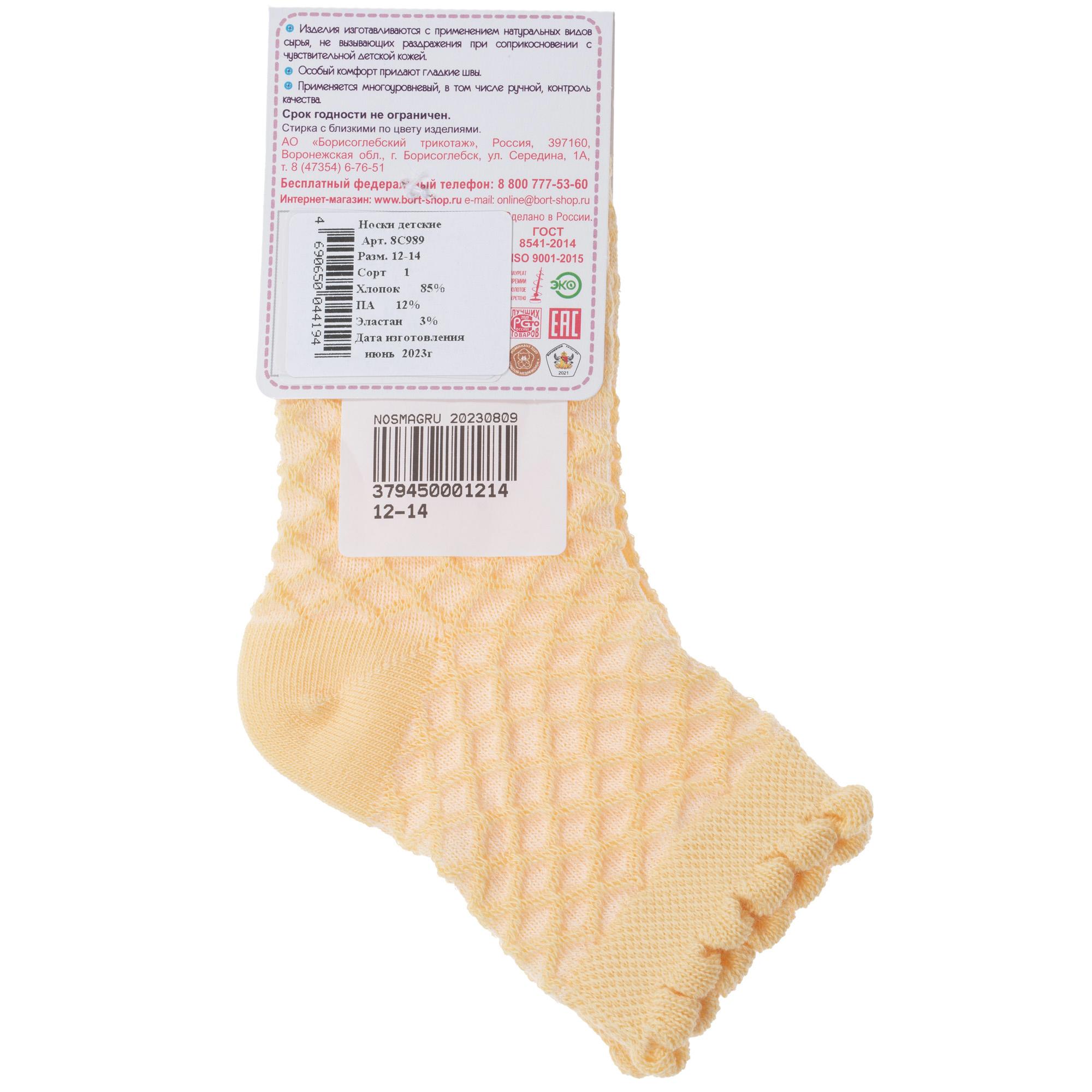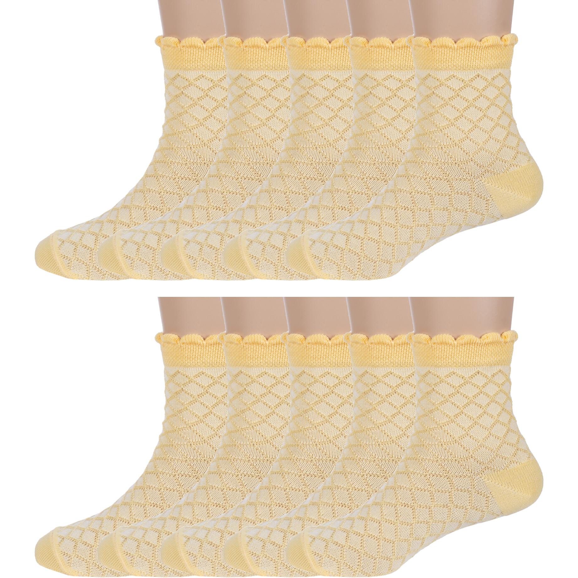 Комплект детских носков из 10 пар, летние, укороченные, цвет желтый, ажурные, состав: 85% хлопок, 12% полиамид, 3% эластан, фабричный артикул 10-8С989. Производитель «АО Борисоглебский трикотаж, Воронежская обл, Россия» под брендом «Борисоглебский трикотаж».