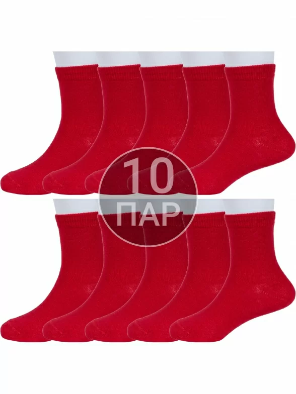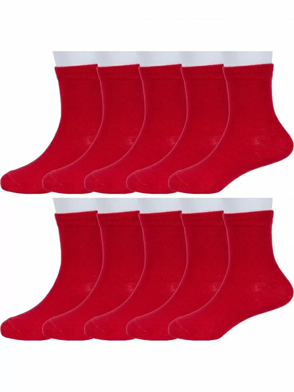 Комплект детских носков из 10 пар, круглогодичные, средней длины, цвет красный, классические, шов обычный (не бесшовные), принт (рисунок): без рисунков/узоров, однотонный, состав: 74% хлопок, 24% полиамид, 2% эластан, арт. 10-С765. Производитель «ГАММА» Россия под брендом «Гамма».