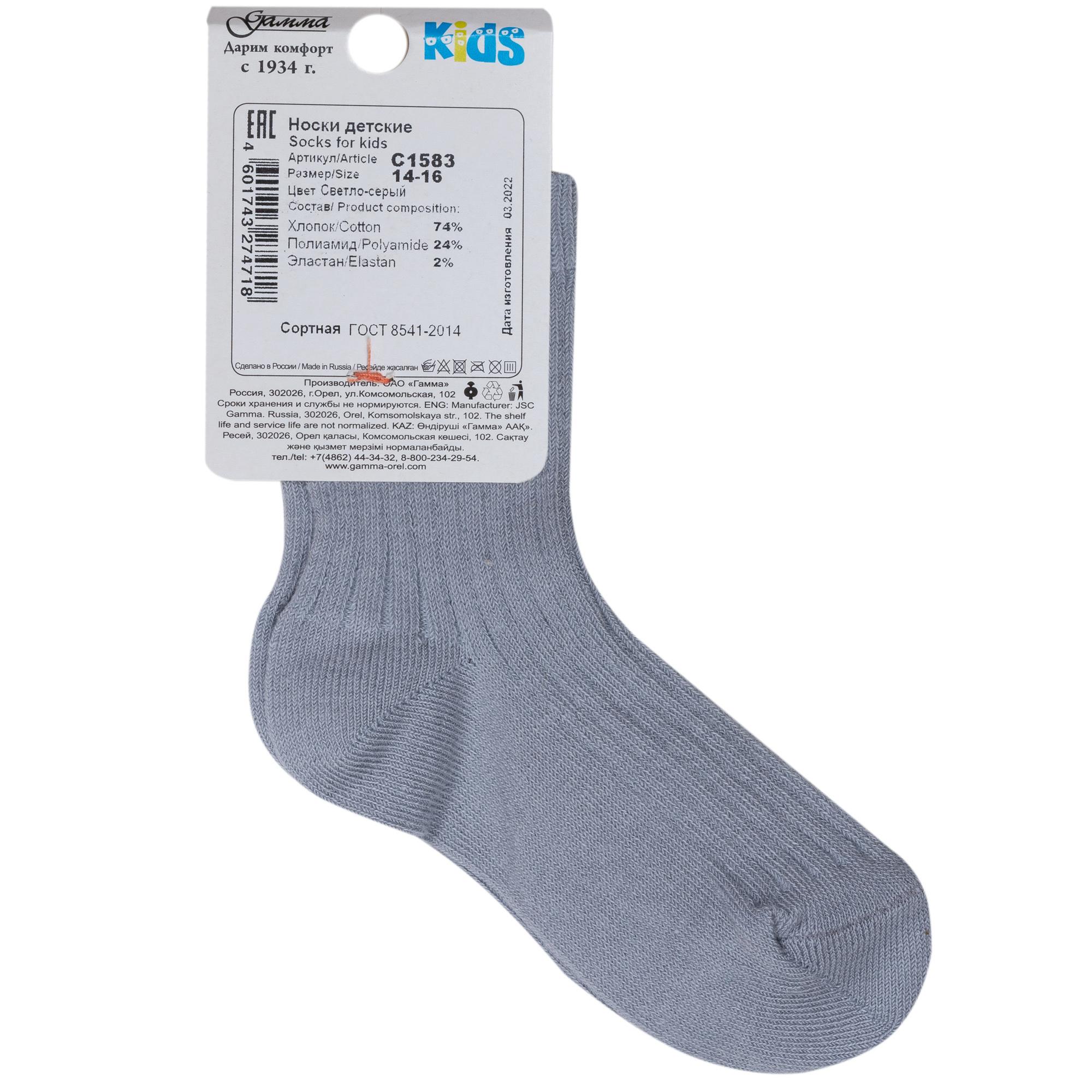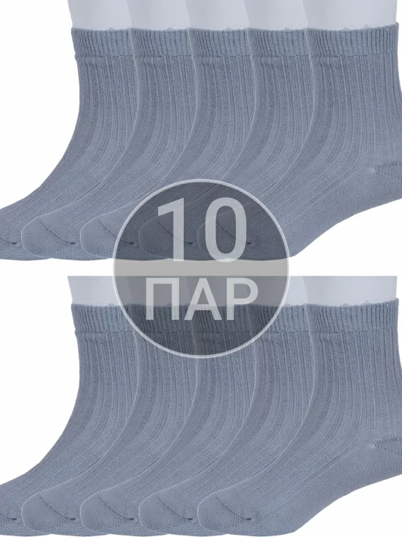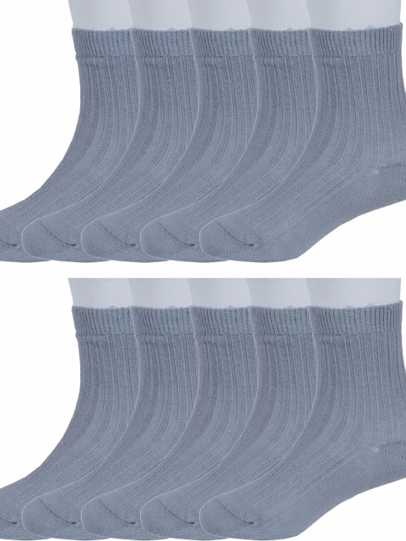 Комплект детских носков из 10 пар, круглогодичные, укороченные, цвет светло-серый, классические, шов обычный (не бесшовные), принт (рисунок): в рубчик, однотонный, состав: 74% хлопок, 24% полиамид, 2% эластан, арт. 10-С1583. Производитель «ГАММА» Россия под брендом «Гамма».