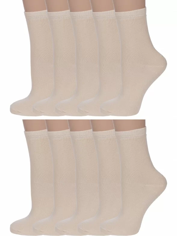 Комплект детских носков из 10 пар, круглогодичные, средней длины, цвет бежевый, классические, шов обычный (не бесшовные), принт (рисунок): однотонный, без рисунков/узоров, состав: 80% хлопок, 15% полиамид, 5% эластан, арт. 10-d-1226. Производитель «ХОХ» Россия под брендом «Хох».
