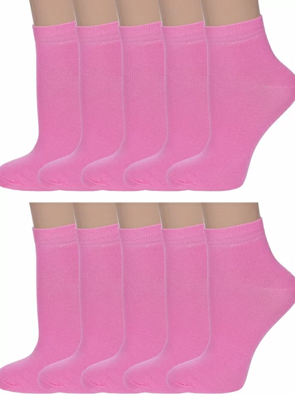 Комплект детских носков из 10 пар, межсезонные или летние, короткие, цвет розовый, классические, шов обычный (не бесшовные), принт (рисунок): однотонный, без рисунков/узоров, состав: 88% хлопок, 10% полиамид, 2% эластан, арт. 10-d-1229. Производитель «ХОХ» Россия под брендом «Хох».