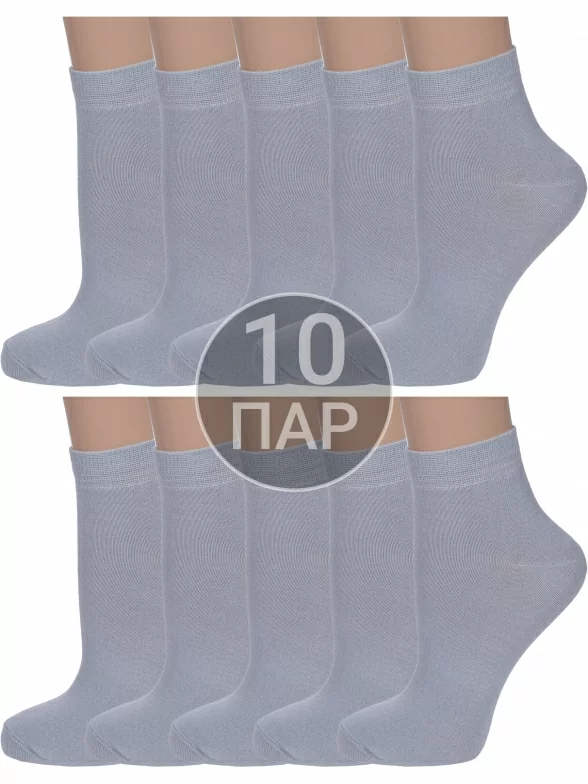 Комплект детских носков из 10 пар, летние, короткие, цвет серый, классические, шов обычный (не бесшовные), принт (рисунок): однотонный, без рисунков/узоров, состав: 88% хлопок, 10% полиамид, 2% эластан, арт. 10-d-1229. Производитель «ХОХ» Россия под брендом «Хох».