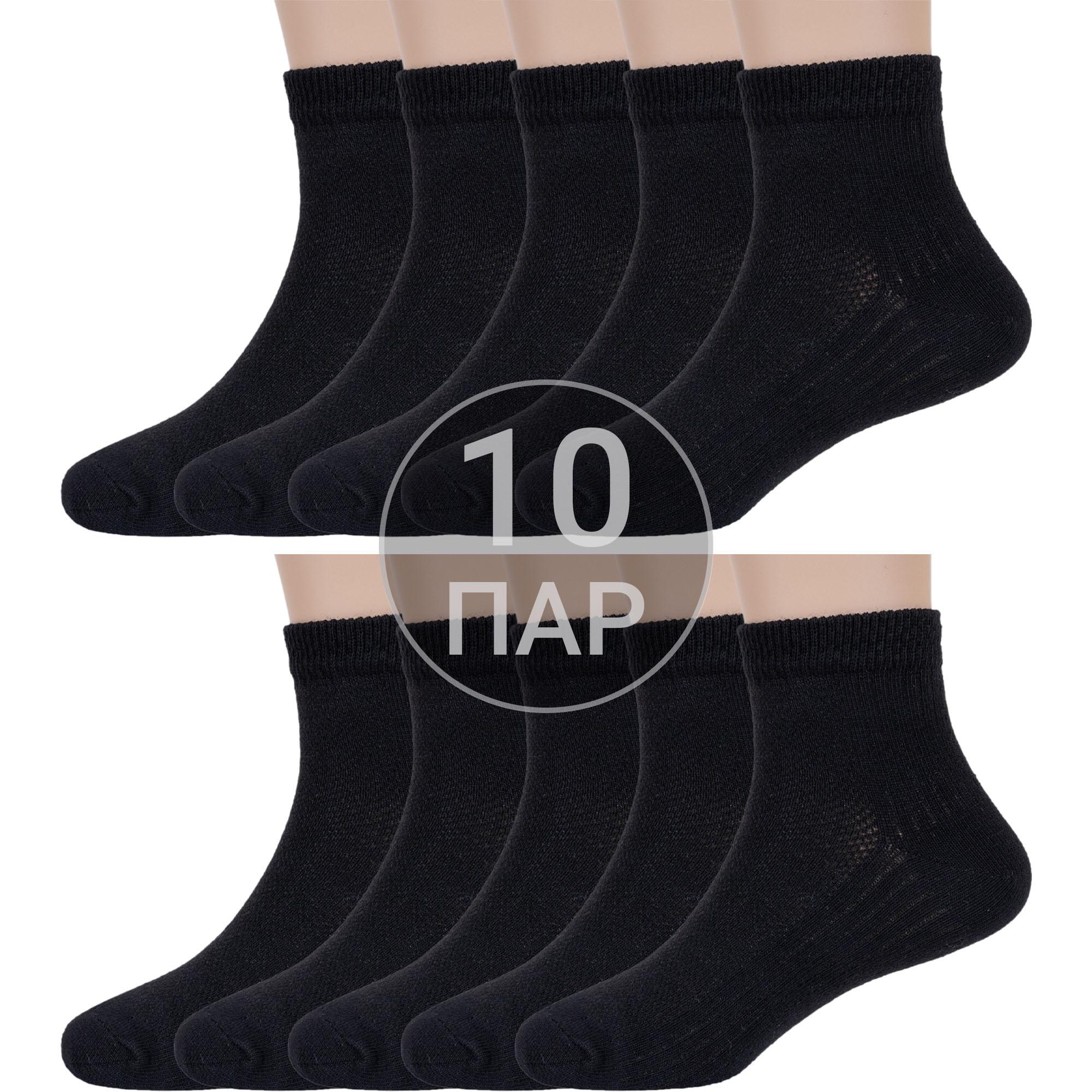 Комплект детских носков из 10 пар, летние, укороченные, цвет черный, в сеточку, классические, возможно бесшовные, принт (рисунок): спортивные, однотонный, состав: 69% хлопок, 24% полиамид, 7% эластан, арт. 10-С-736. Производитель «КРАСНАЯ ВЕТКА» Россия под брендом «Красная ветка».