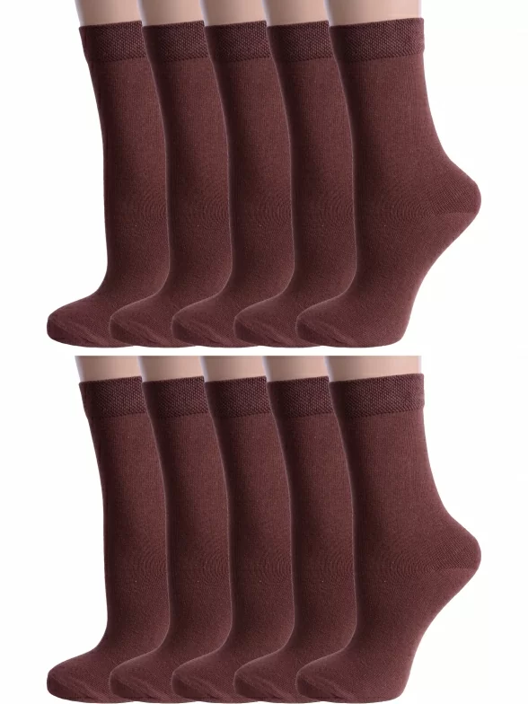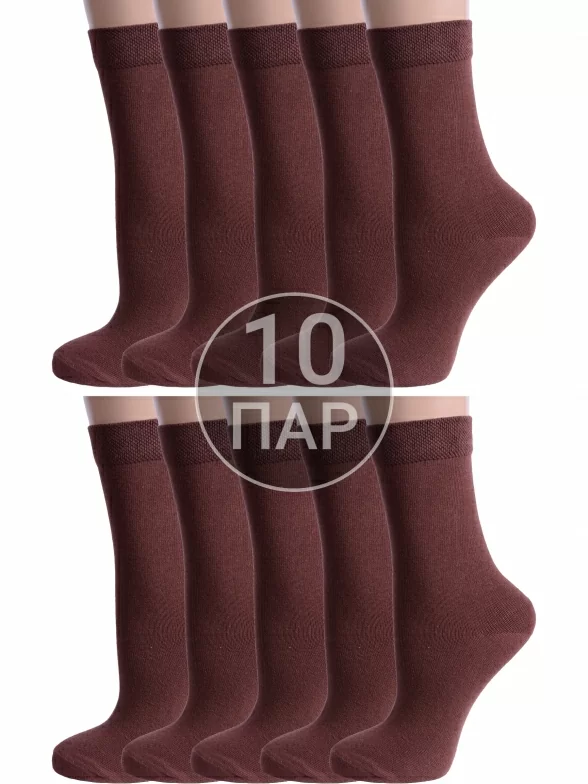 Комплект детских носков из 10 пар, круглогодичные, средней длины, цвет шоколад, классические, шов обычный (не бесшовные), принт (рисунок): однотонный, без рисунков/узоров, состав: 80% хлопок, 18% полиамид, 2% эластан, арт. 10-А94. Производитель «ООО Альтаир, г. Орск, Оренбургская обл, Россия» под брендом «Альтаир».