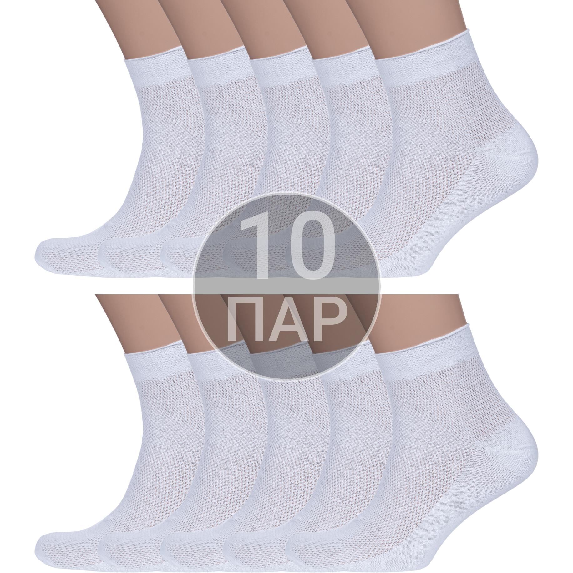 Комплект мужских носков из 10 пар, летние, укороченные, цвет белый, в сеточку, классические, шов обычный (не бесшовные), принт (рисунок): однотонный, состав: 75% хлопок, 25% полиамид, арт. 10-А43. Производитель «ООО Альтаир, г. Орск, Оренбургская обл, Россия» под брендом «Альтаир».