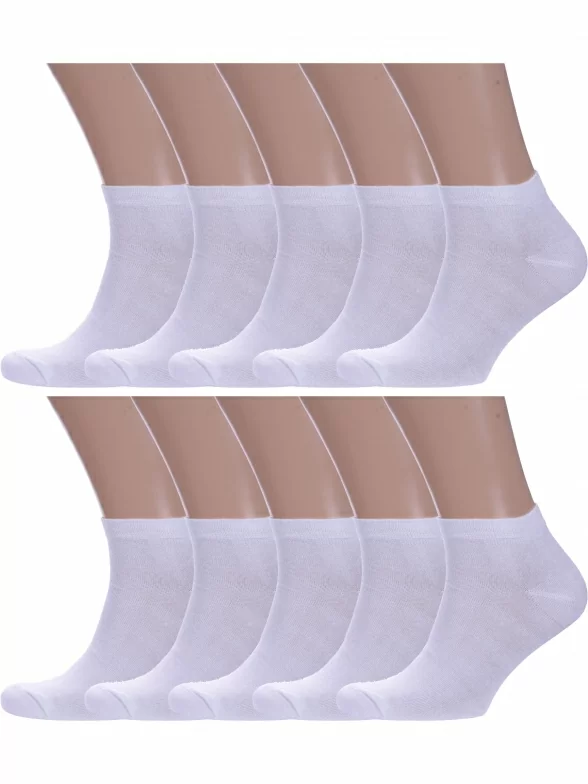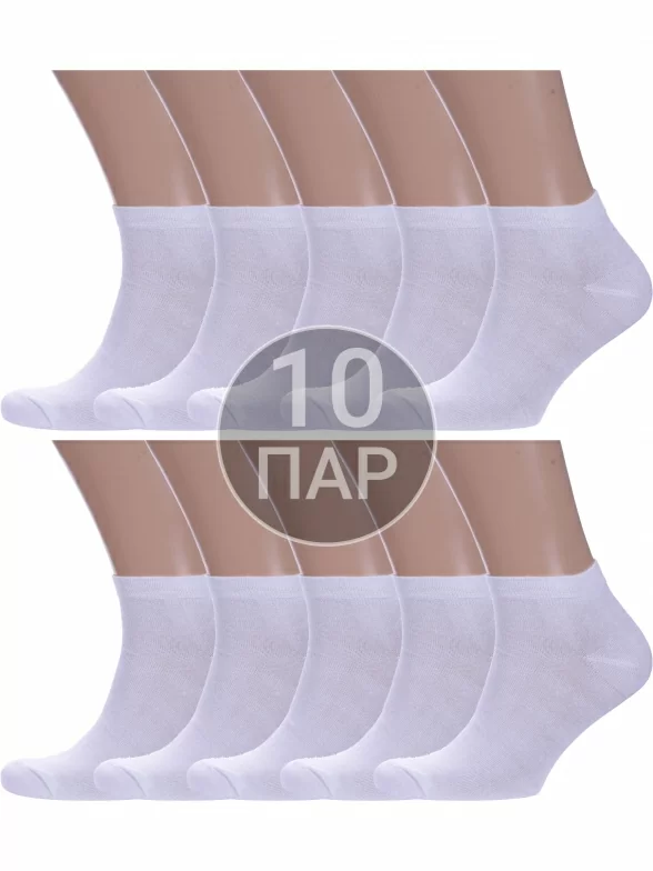 Комплект мужских носков из 10 пар, летние, короткие, цвет белый, классические, шов обычный (не бесшовные), принт (рисунок): без рисунков/узоров, состав: 80% хлопок, 18% полиамид, 2% эластан, арт. 10-О214. Производитель «ООО Альтаир, г. Орск, Оренбургская обл, Россия» под брендом «Альтаир».