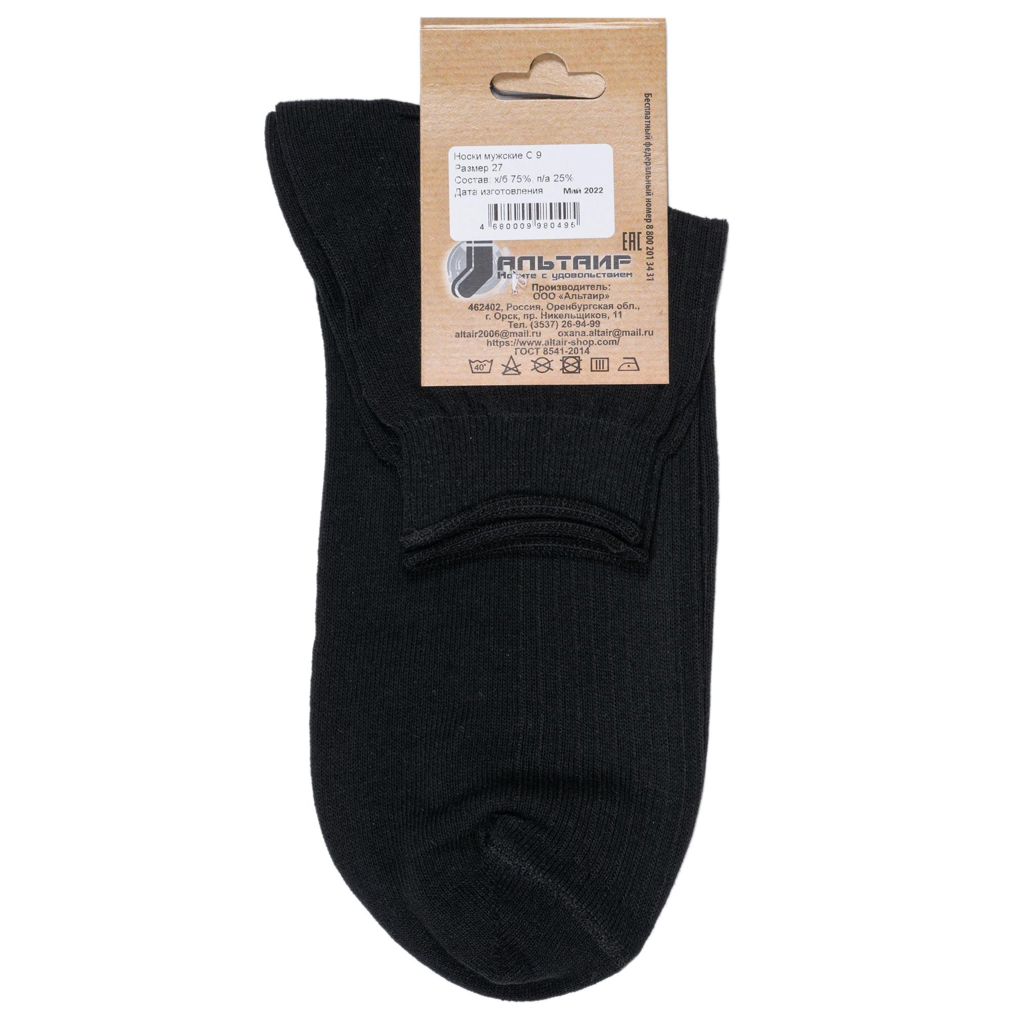 Комплект мужских носков из 10 пар, межсезонные или летние, укороченные, цвет черный, классические, шов обычный (не бесшовные), принт (рисунок): однотонный, без рисунков/узоров, состав: 75% хлопок, 25% полиамид, арт. 10-С9. Производитель «ООО Альтаир, г. Орск, Оренбургская обл, Россия» под брендом «Альтаир».
