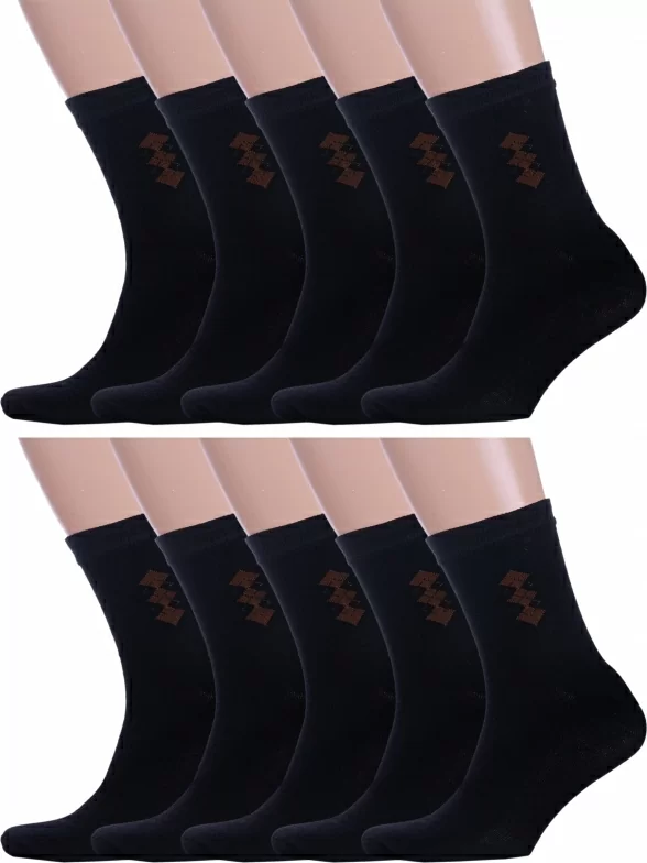 Комплект мужских носков из 10 пар, межсезонные или летние, укороченные, цвет черный с шоколадным, классические, шов обычный (не бесшовные), принт (рисунок): аргайл, однотонный, небольшой рисунок, состав: 75% хлопок, 25% полиамид, арт. 10-С45. Производитель «ООО Альтаир, г. Орск, Оренбургская обл, Россия» под брендом «Альтаир».