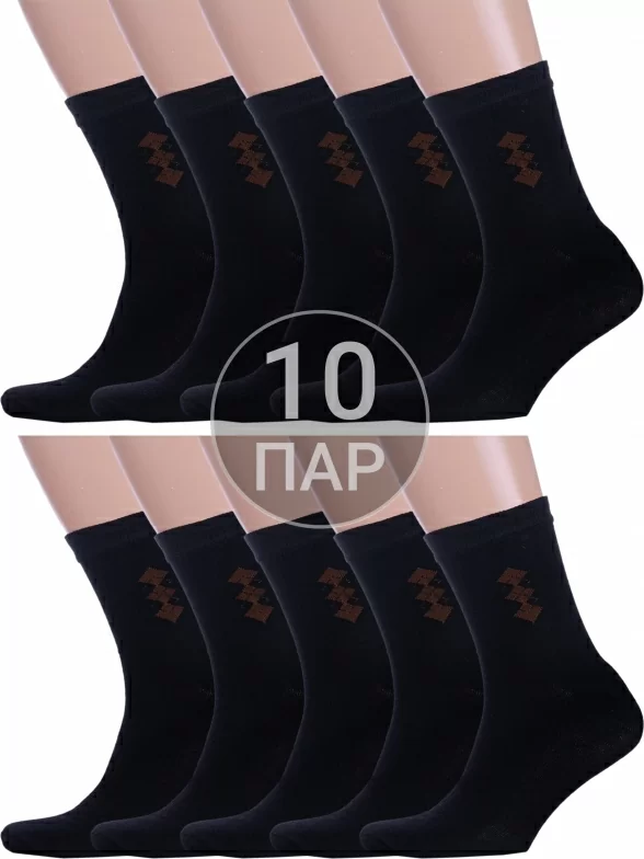 Комплект из 10 пар мужских носков Альтаир, 10-С45, ЧЕРНЫЕ с шоколадным