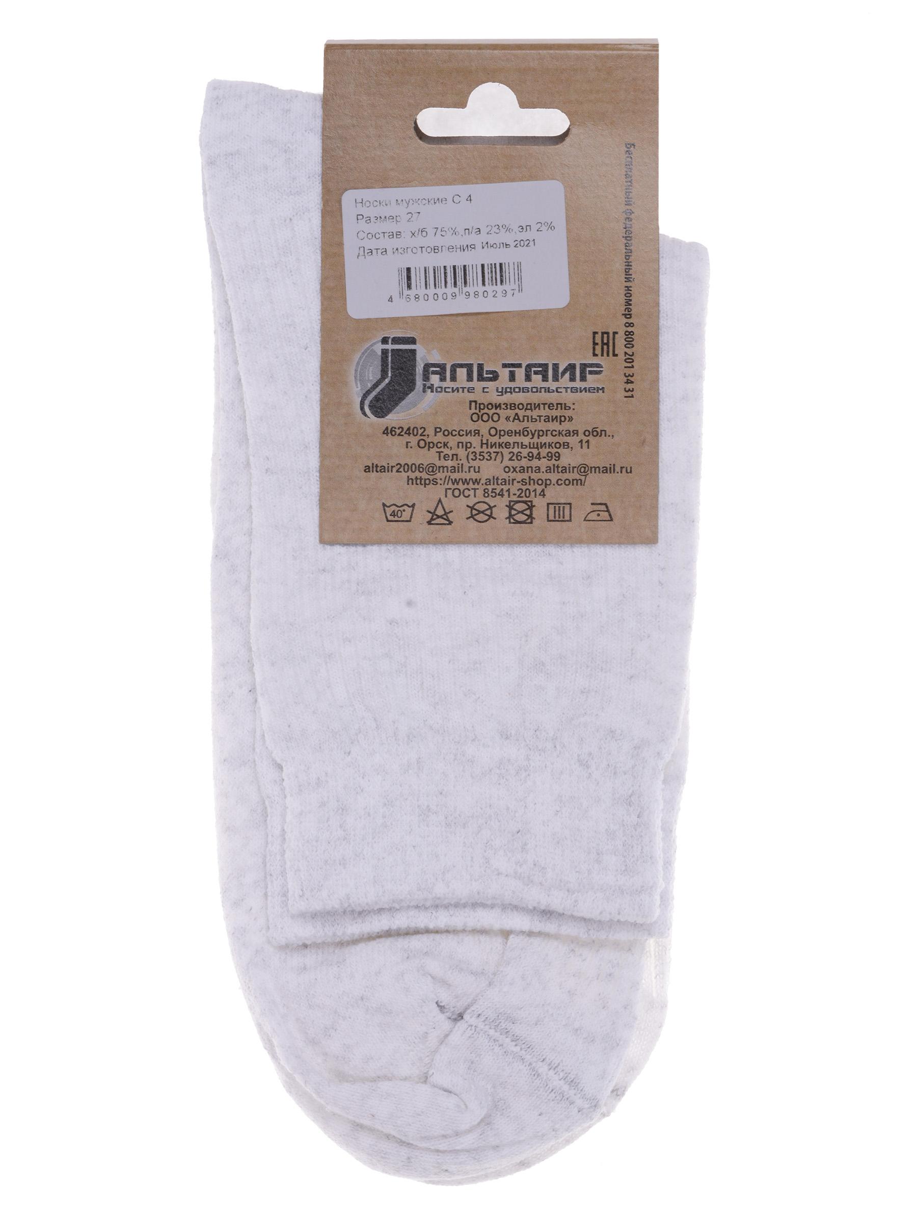 Комплект мужских носков из 10 пар, круглогодичные, средней длины, цвет светло-серый, классические, шов плоский, принт (рисунок): в рубчик, с узором, однотонный, состав: 75% хлопок, 23% полиамид, 2% эластан, арт. 10-С4. Производитель «ООО Альтаир, г. Орск, Оренбургская обл, Россия» под брендом «Альтаир».