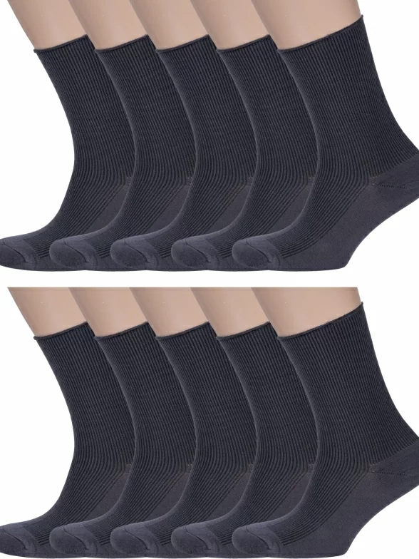 Комплект носков унисекс из 10 пар, круглогодичные, средней длины, цвет темно-серый, медицинские, шов обычный (не бесшовные), принт (рисунок): в рубчик, однотонный, состав: 80% хлопок, 18% полиамид, 2% эластан, арт. 10-С198. Производитель «ООО Альтаир, г. Орск, Оренбургская обл, Россия» под брендом «Альтаир».