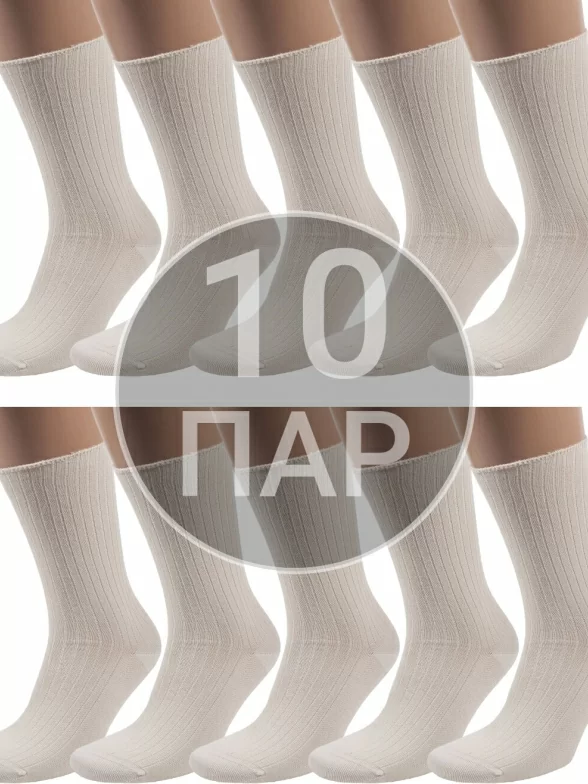 Комплект мужских носков из 10 пар, круглогодичные, средней длины, цвет бежевый, медицинские, возможно бесшовные, принт (рисунок): в рубчик, однотонный, состав: 80% хлопок, 15% полиамид, 5% эластан, арт. 10-X-201. Производитель «ХОХ» Россия под брендом «Хох».