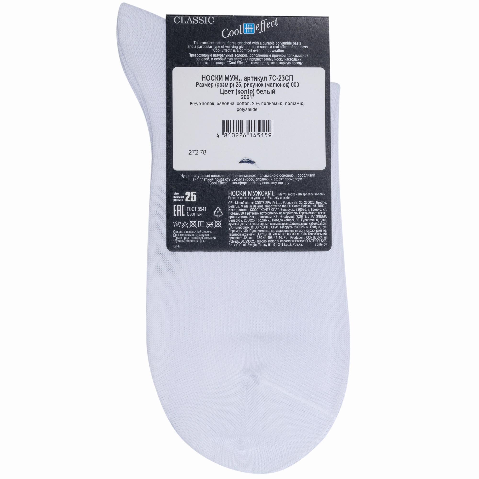Комплект мужских носков из 10 пар, межсезонные или летние, средней длины, цвет рис. 000, белый, классические, шов кеттельный (бесшовная технология), принт (рисунок): однотонный, без рисунков/узоров, состав: 80% хлопок, 20% полиамид, арт. 10-7С-23СП. Производитель «DiWaRi» Беларусь под брендом «Diwari».