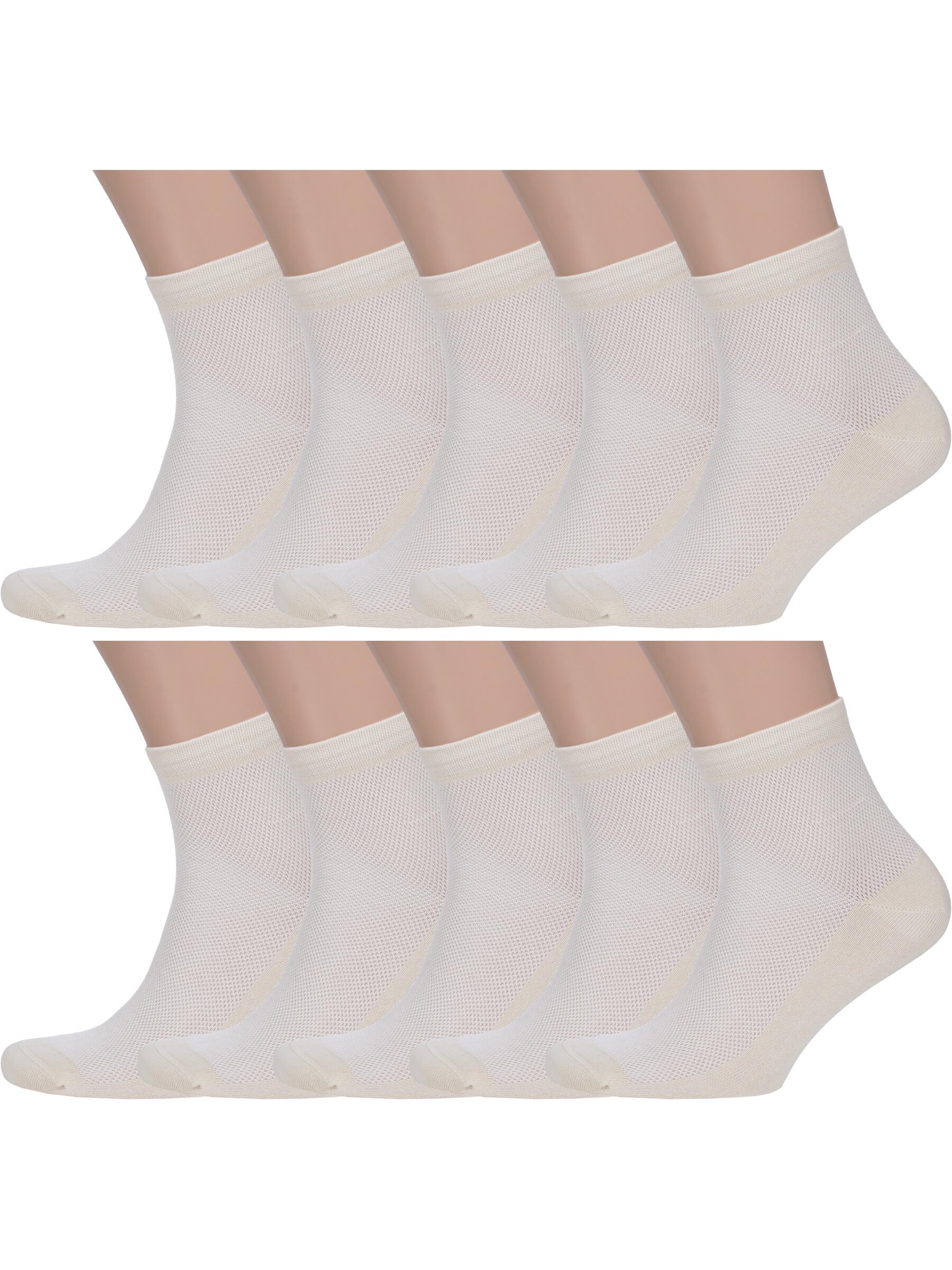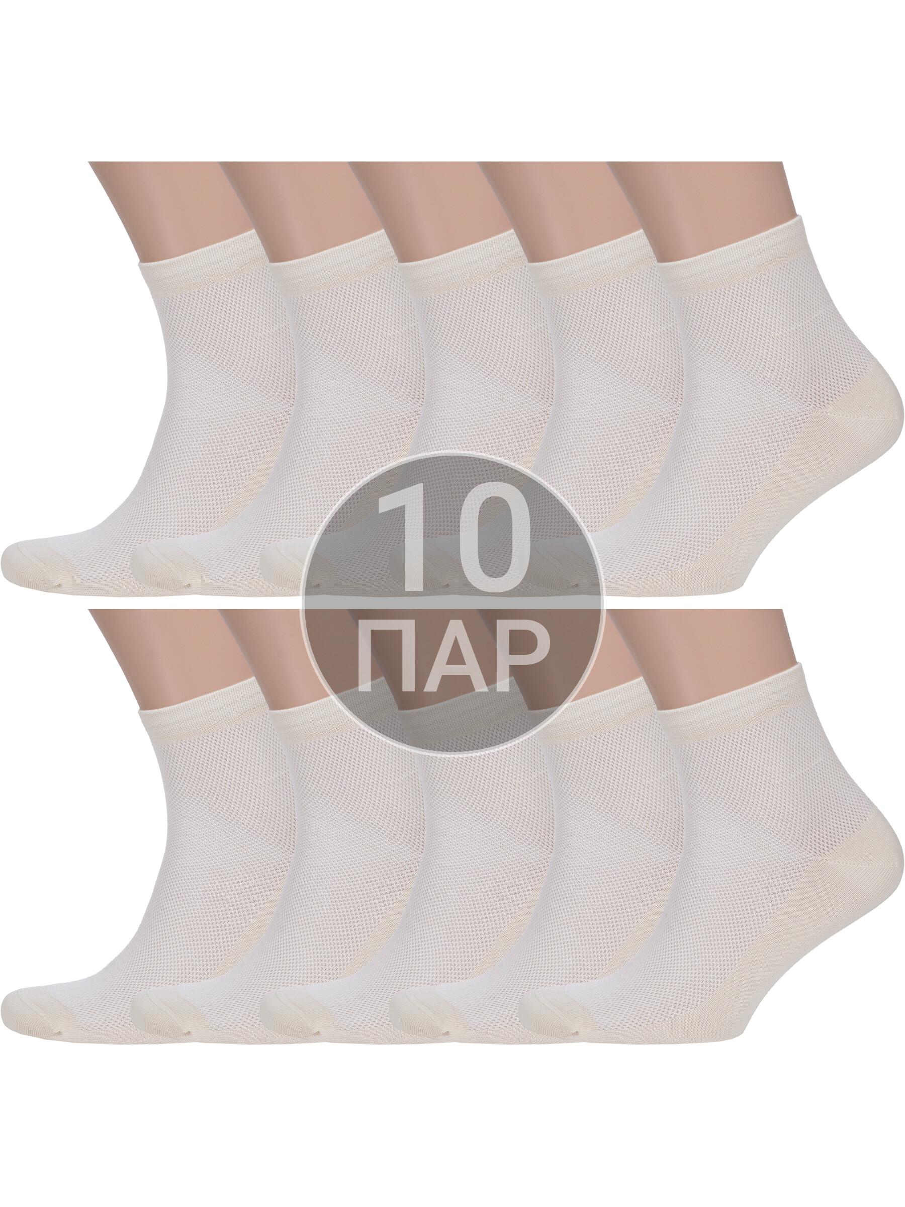 Комплект мужских носков из 10 пар, летние, укороченные, цвет бежевый, классические, возможно бесшовные, принт (рисунок): однотонный, без рисунков/узоров, состав: 85% хлопок, 15% полиамид, арт. 10-X-1128. Производитель «ХОХ» Россия под брендом «Хох».