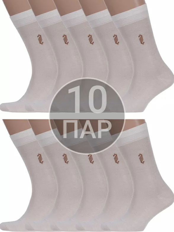 Комплект мужских носков из 10 пар, межсезонные или летние, средней длины, цвет бежевый, классические, возможно бесшовные, принт (рисунок): однотонный, небольшой рисунок, состав: 85% модал, 15% полиамид, арт. 10-X-1117. Производитель «ХОХ» Россия под брендом «Хох».