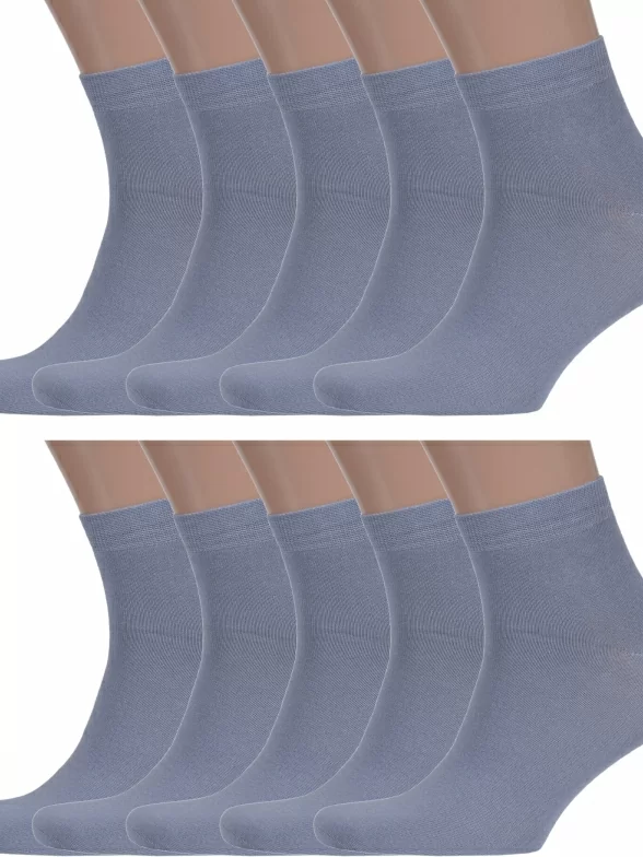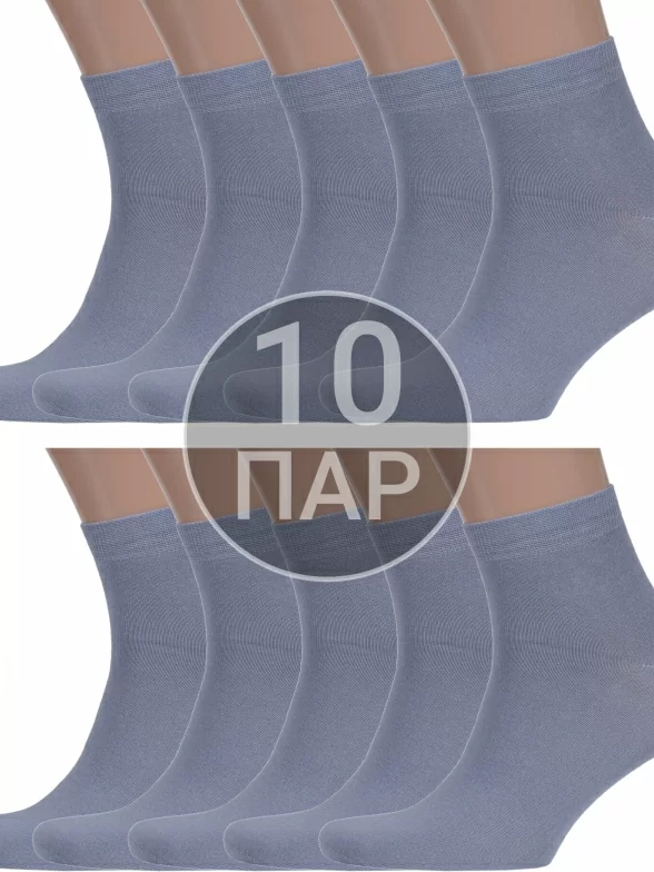 Комплект мужских носков из 10 пар, круглогодичные, укороченные, цвет серый, классические, возможно бесшовные, принт (рисунок): однотонный, без рисунков/узоров, состав: 88% хлопок, 10% полиамид, 2% эластан, арт. 10-X-1125. Производитель «ХОХ» Россия под брендом «Хох».