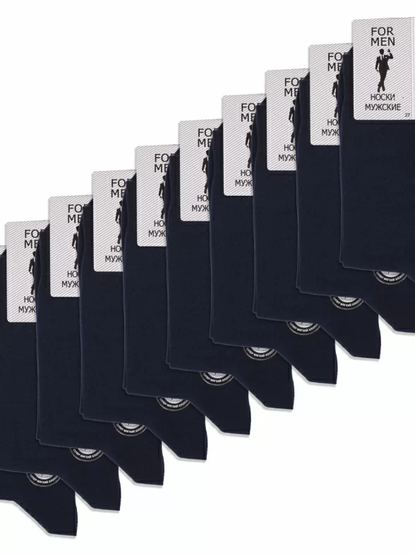 В комплект входит 10 пар темно-синих носков артикула С-330/1 с индивидуальными фабричными этикетками.