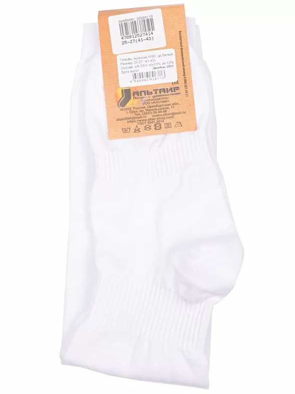 Комплект мужских гольфов из 10 пар, круглогодичные, цвет белый, спортивные, возможно бесшовные, принт (рисунок): в рубчик, с узором, состав: 78% хлопок, 10% полиамид, 12% эластан, арт. 10-М95. Производитель «ООО Альтаир, г. Орск, Оренбургская обл, Россия» под брендом «Альтаир».