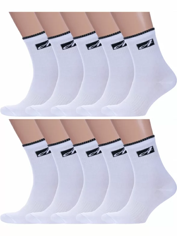 Комплект мужских носков из 10 пар, круглогодичные, средней длины, цвет белый, спортивные, шов обычный (не бесшовные), принт (рисунок): в рубчик, небольшой рисунок, состав: 77% хлопок, 21% полиамид, 2% эластан, арт. 10-С199. Производитель «ООО Альтаир, г. Орск, Оренбургская обл, Россия» под брендом «Альтаир».