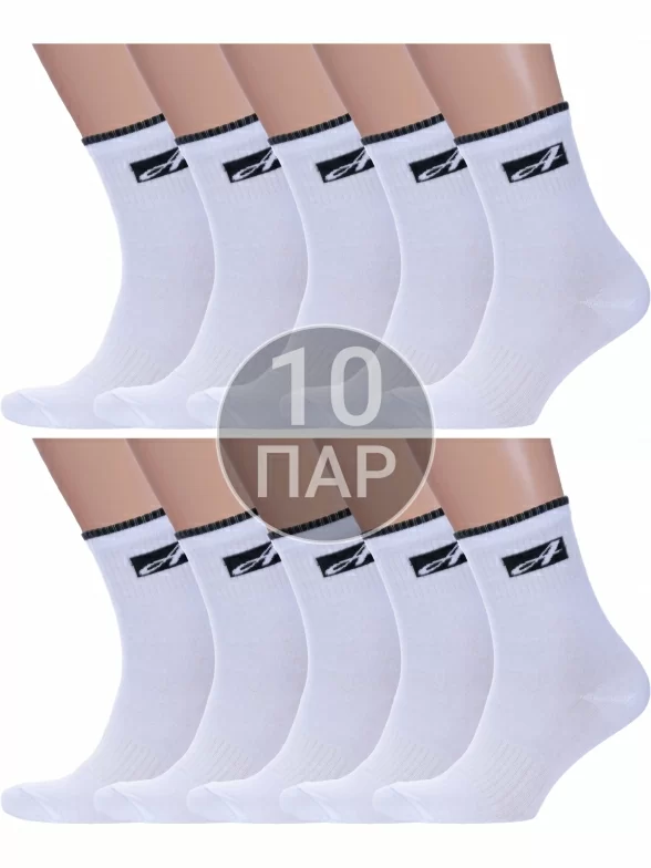 Комплект из 10 пар мужских спортивных носков Альтаир, 10-С199, БЕЛЫЕ