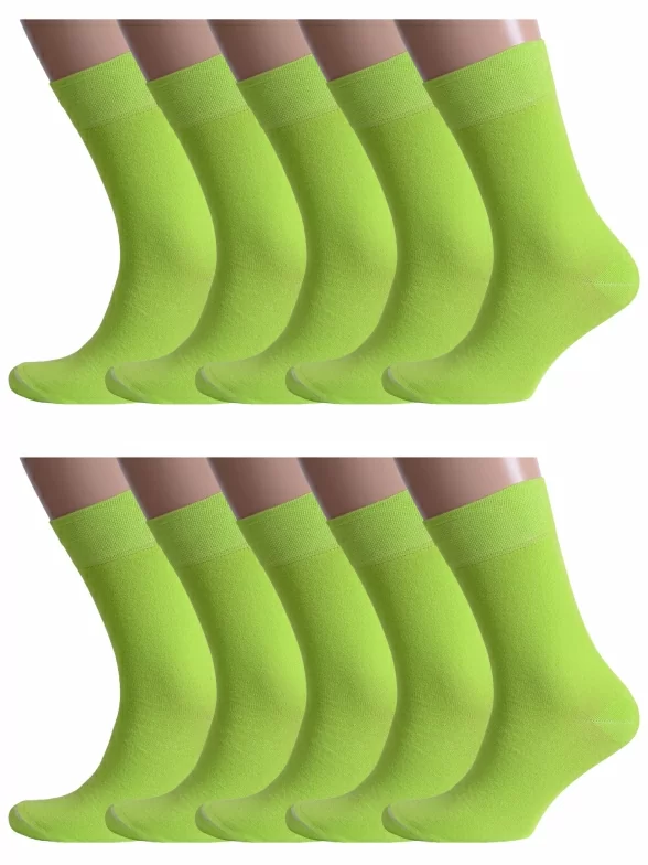 Комплект мужских носков из 10 пар, круглогодичные, средней длины, цвет салатовый, классические, шов обычный (не бесшовные), принт (рисунок): однотонный, без рисунков/узоров, состав: 80% хлопок, 18% полиамид, 2% эластан, арт. 10-H226. Производитель «ООО Альтаир, г. Орск, Оренбургская обл, Россия» под брендом «Альтаир».