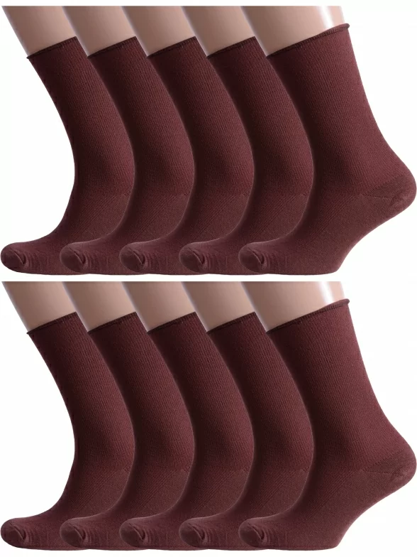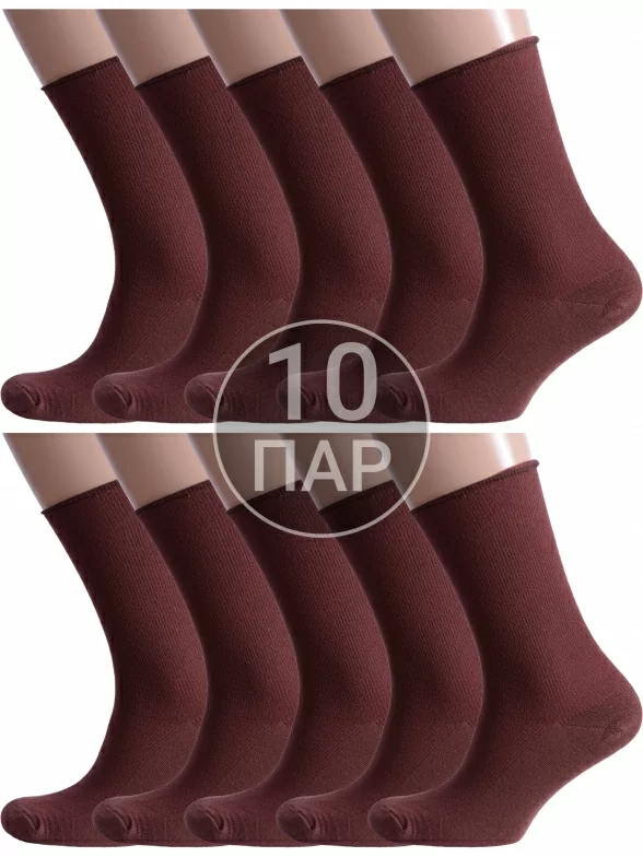 Комплект носков унисекс из 10 пар, круглогодичные, средней длины, цвет шоколад, медицинские, шов обычный (не бесшовные), принт (рисунок): однотонный, в рубчик, состав: 80% хлопок, 18% полиамид, 2% эластан, арт. 10-С198. Производитель «ООО Альтаир, г. Орск, Оренбургская обл, Россия» под брендом «Альтаир».