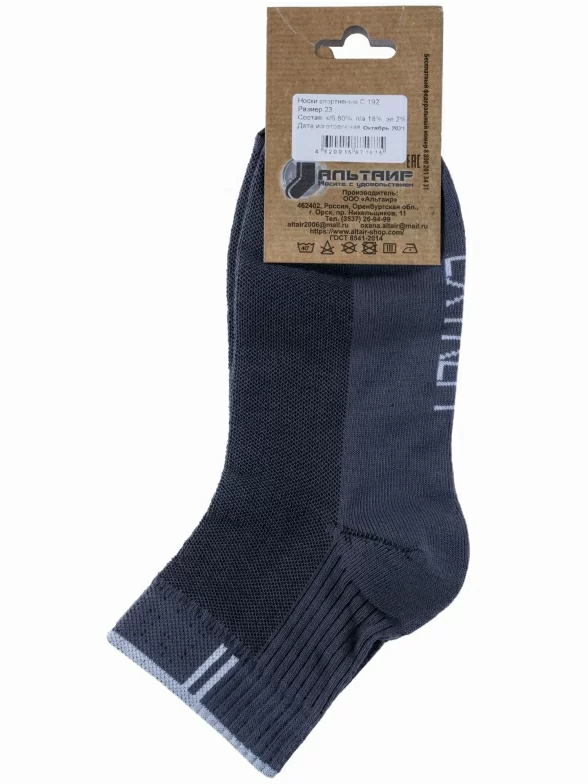 Комплект носков унисекс из 10 пар, летние, короткие, цвет темно-серый, в сеточку, спортивные, состав: 80% хлопок, 18% полиамид, 2% эластан, арт. 10-С192. Производитель «ООО Альтаир, г. Орск, Оренбургская обл, Россия» под брендом «Альтаир».