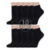 Комплект женских носков из 10 пар, летние или круглогодичные, короткие, цвет черный, спортивные, возможно бесшовные, принт (рисунок): однотонный, без рисунков/узоров, состав: 80% бамбук, 18% полиамид, 2% эластан, арт. 10-G-1125. Производитель «ХОХ» Россия под брендом «Хох».