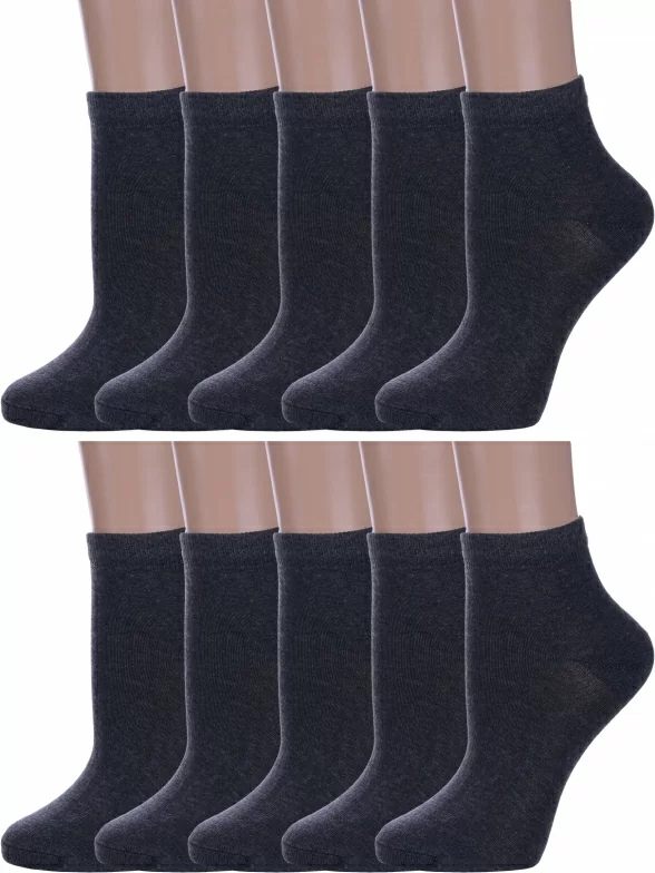 Комплект женских носков из 10 пар, летние, короткие, цвет антрацит, классические, шов обычный (не бесшовные), принт (рисунок): без рисунков/узоров, состав: 75% хлопок, 23% полиамид, 2% эластан, арт. 10-А61. Производитель «ООО Альтаир, г. Орск, Оренбургская обл, Россия» под брендом «Альтаир».