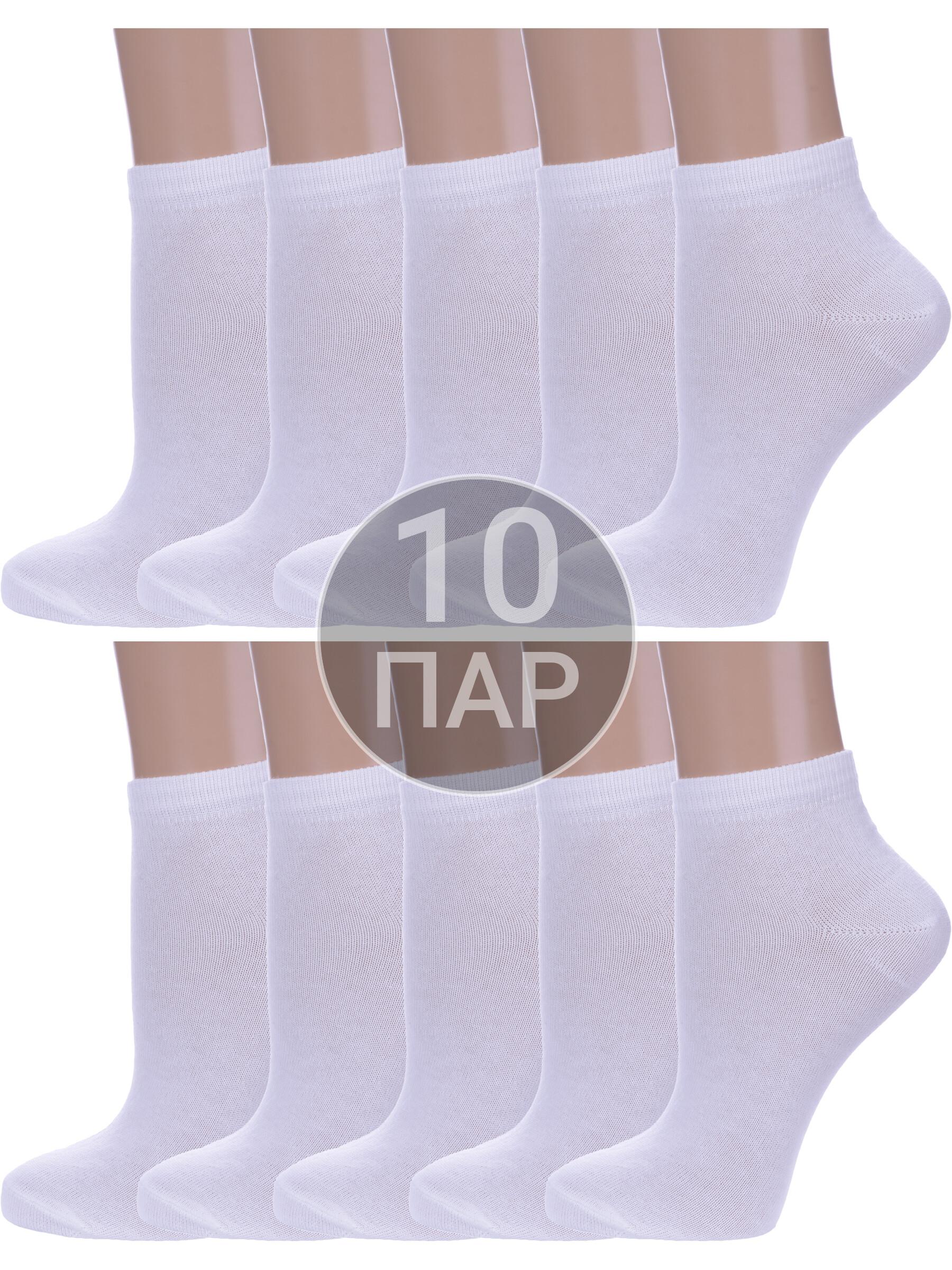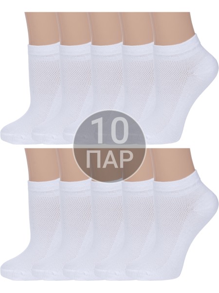 Комплект женских носков из 10 пар, летние, короткие, цвет белый, классические, шов обычный (не бесшовные), принт (рисунок): однотонный, без рисунков/узоров, состав: 75% хлопок, 23% полиамид, 2% эластан, арт. 10-А61. Производитель «ООО Альтаир, г. Орск, Оренбургская обл, Россия» под брендом «Альтаир».