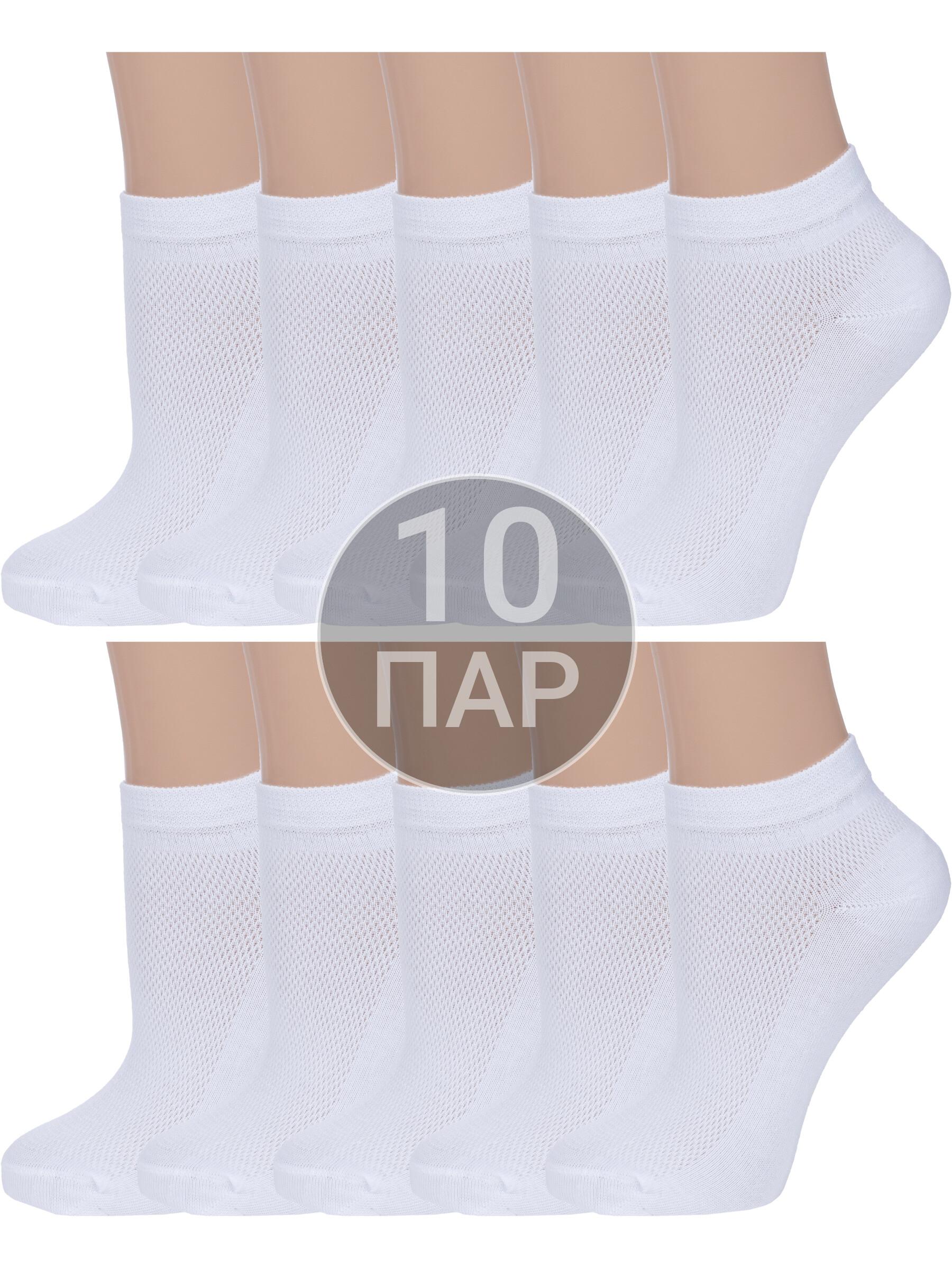 Комплект женских носков из 10 пар, летние, короткие, цвет белый, в сеточку, шов обычный (не бесшовные), принт (рисунок): однотонный, состав: 80% хлопок, 18% полиамид, 2% эластан, арт. 10-С82. Производитель «ООО Альтаир, г. Орск, Оренбургская обл, Россия» под брендом «Альтаир».
