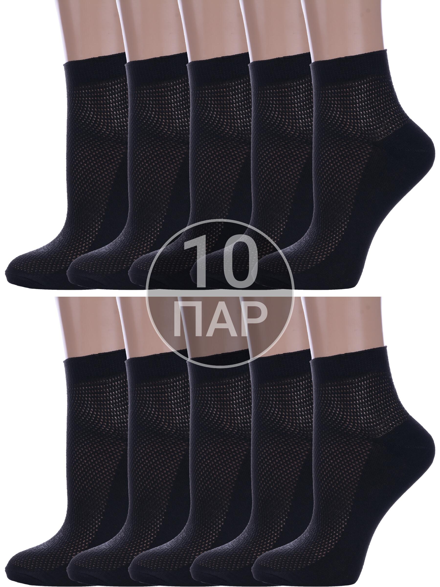 Комплект женских носков из 10 пар, летние, укороченные, цвет черный, в сеточку, шов обычный (не бесшовные), принт (рисунок): без рисунков/узоров, состав: 75% хлопок, 25% полиамид, арт. 10-А33. Производитель «ООО Альтаир, г. Орск, Оренбургская обл, Россия» под брендом «Альтаир».