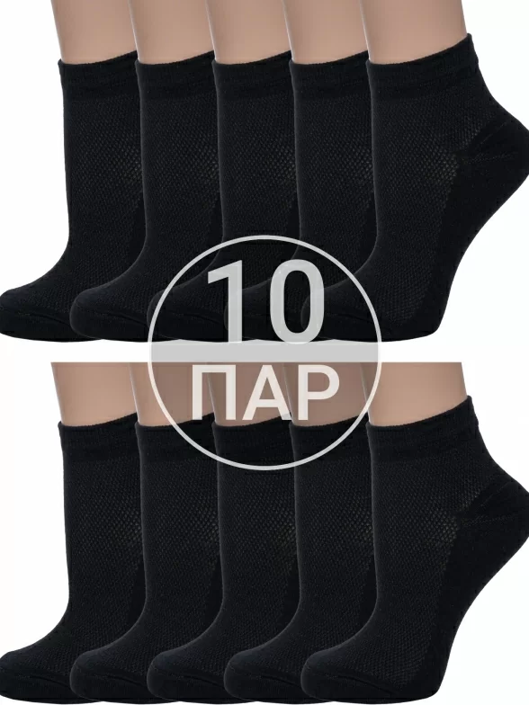 Комплект женских носков из 10 пар, летние, короткие, цвет черный, в сеточку, состав: 80% хлопок, 18% полиамид, 2% эластан, фабричный артикул 10-С82. Производитель «ООО Альтаир, г. Орск, Оренбургская обл, Россия» под брендом «Альтаир».