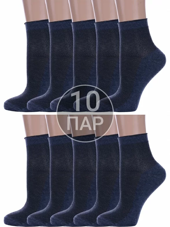 Комплект женских носков из 10 пар, летние, укороченные, цвет джинс, в сеточку, шов обычный (не бесшовные), принт (рисунок): без рисунков/узоров, состав: 75% хлопок, 25% полиамид, арт. 10-А33. Производитель «ООО Альтаир, г. Орск, Оренбургская обл, Россия» под брендом «Альтаир».