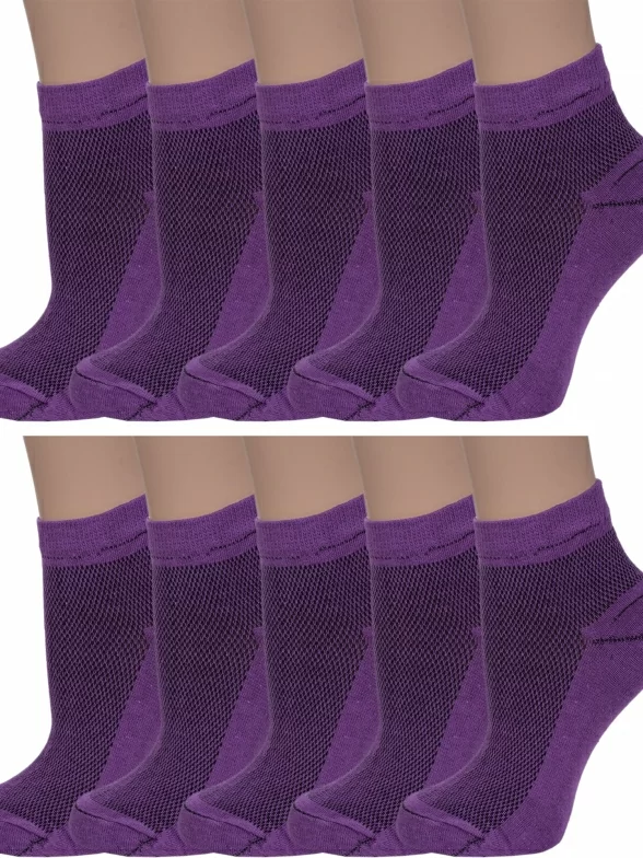 Комплект женских носков из 10 пар, летние, короткие, цвет фиолетовый, в сеточку, состав: 80% хлопок, 18% полиамид, 2% эластан, фабричный артикул 10-С82. Производитель «ООО Альтаир, г. Орск, Оренбургская обл, Россия» под брендом «Альтаир».