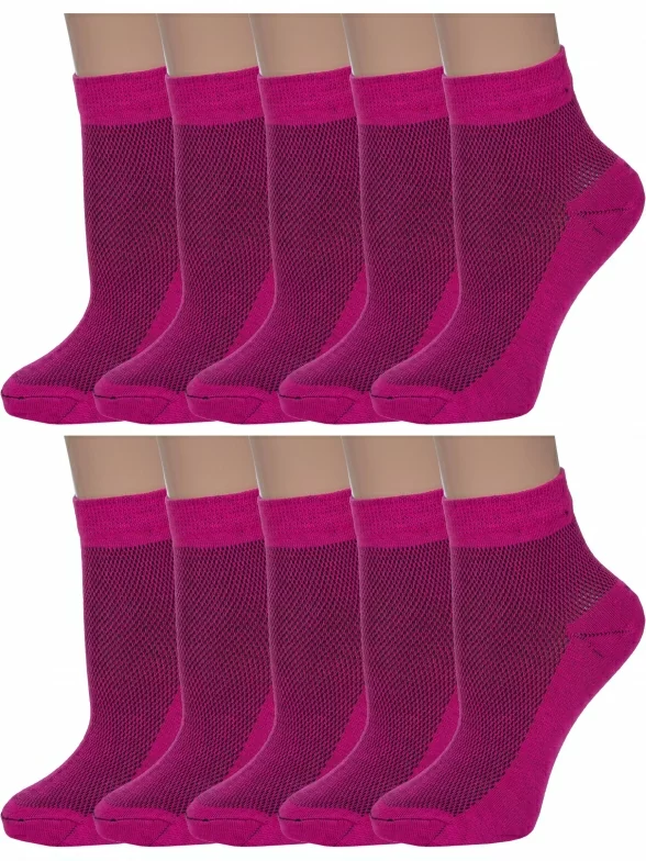 Комплект женских носков из 10 пар, летние, короткие, цвет малиновый, в сеточку, шов обычный (не бесшовные), принт (рисунок): однотонный, состав: 80% хлопок, 18% полиамид, 2% эластан, арт. 10-С82. Производитель «ООО Альтаир, г. Орск, Оренбургская обл, Россия» под брендом «Альтаир».