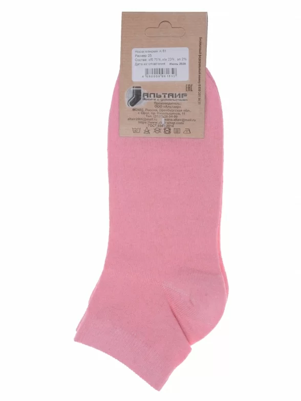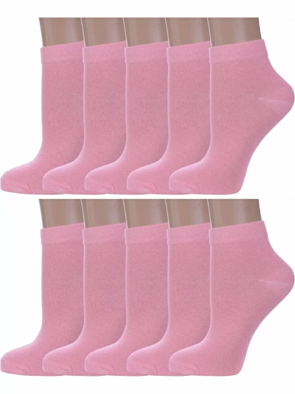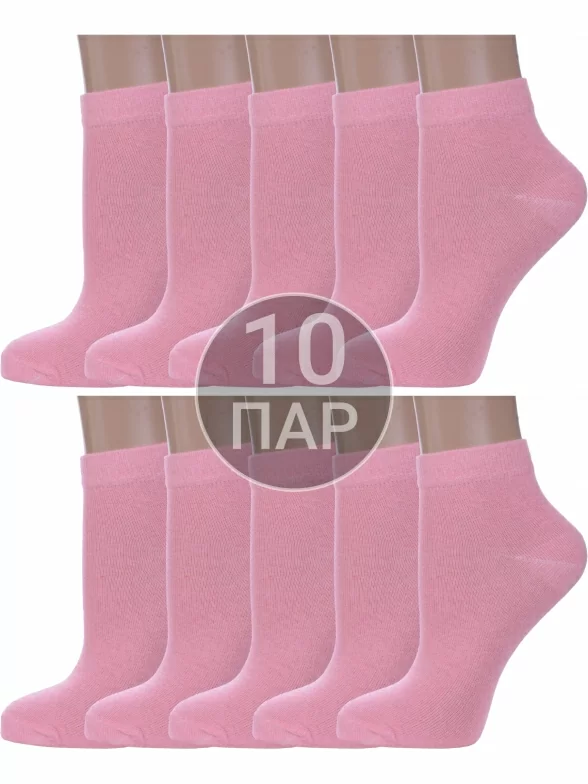Комплект женских носков из 10 пар, летние, короткие, цвет розовый, классические, шов обычный (не бесшовные), принт (рисунок): без рисунков/узоров, состав: 75% хлопок, 23% полиамид, 2% эластан, арт. 10-А61. Производитель «ООО Альтаир, г. Орск, Оренбургская обл, Россия» под брендом «Альтаир».