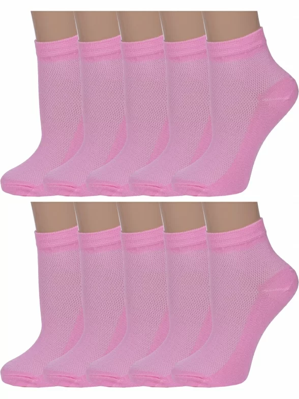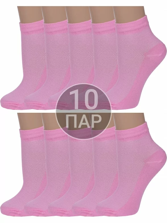 Комплект женских носков из 10 пар, летние, короткие, цвет розовый, в сеточку, шов обычный (не бесшовные), принт (рисунок): однотонный, состав: 80% хлопок, 18% полиамид, 2% эластан, арт. 10-С82. Производитель «ООО Альтаир, г. Орск, Оренбургская обл, Россия» под брендом «Альтаир».