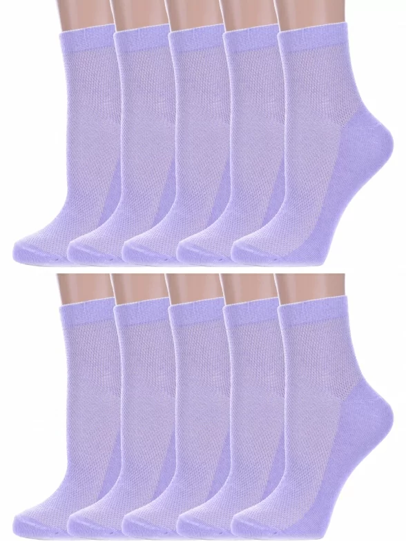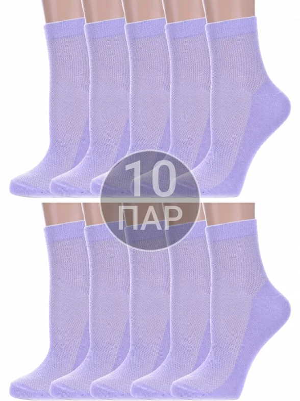 Комплект женских носков из 10 пар, летние, укороченные, цвет сиреневый, в сеточку, шов обычный (не бесшовные), принт (рисунок): без рисунков/узоров, состав: 75% хлопок, 25% полиамид, арт. 10-А33. Производитель «ООО Альтаир, г. Орск, Оренбургская обл, Россия» под брендом «Альтаир».