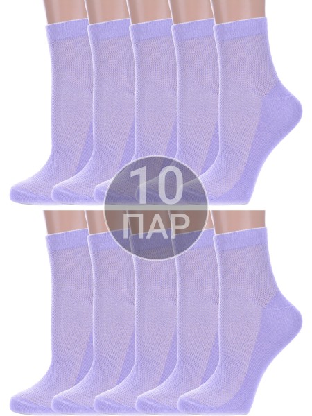 Комплект женских носков из 10 пар, летние, короткие, цвет сиреневый, классические, шов обычный (не бесшовные), принт (рисунок): без рисунков/узоров, состав: 75% хлопок, 23% полиамид, 2% эластан, арт. 10-А61. Производитель «ООО Альтаир, г. Орск, Оренбургская обл, Россия» под брендом «Альтаир».