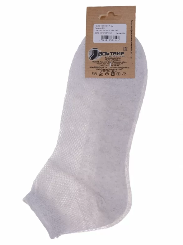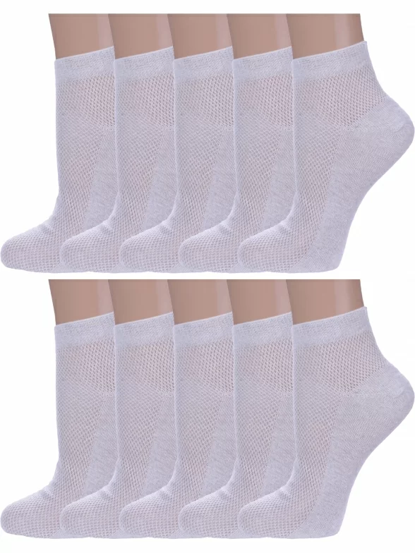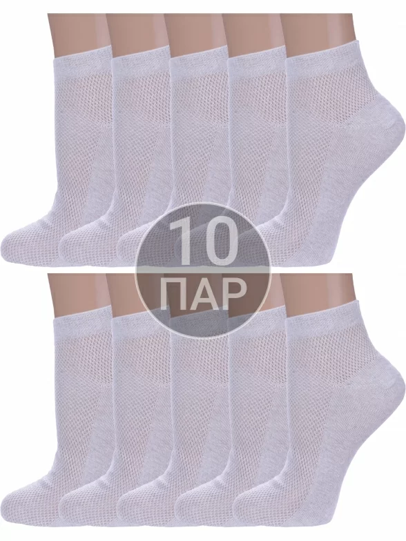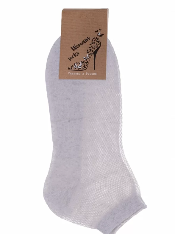 Комплект женских носков из 10 пар, летние, укороченные, цвет светло-серый, в сеточку, шов обычный (не бесшовные), принт (рисунок): без рисунков/узоров, состав: 75% хлопок, 25% полиамид, арт. 10-А33. Производитель «ООО Альтаир, г. Орск, Оренбургская обл, Россия» под брендом «Альтаир».