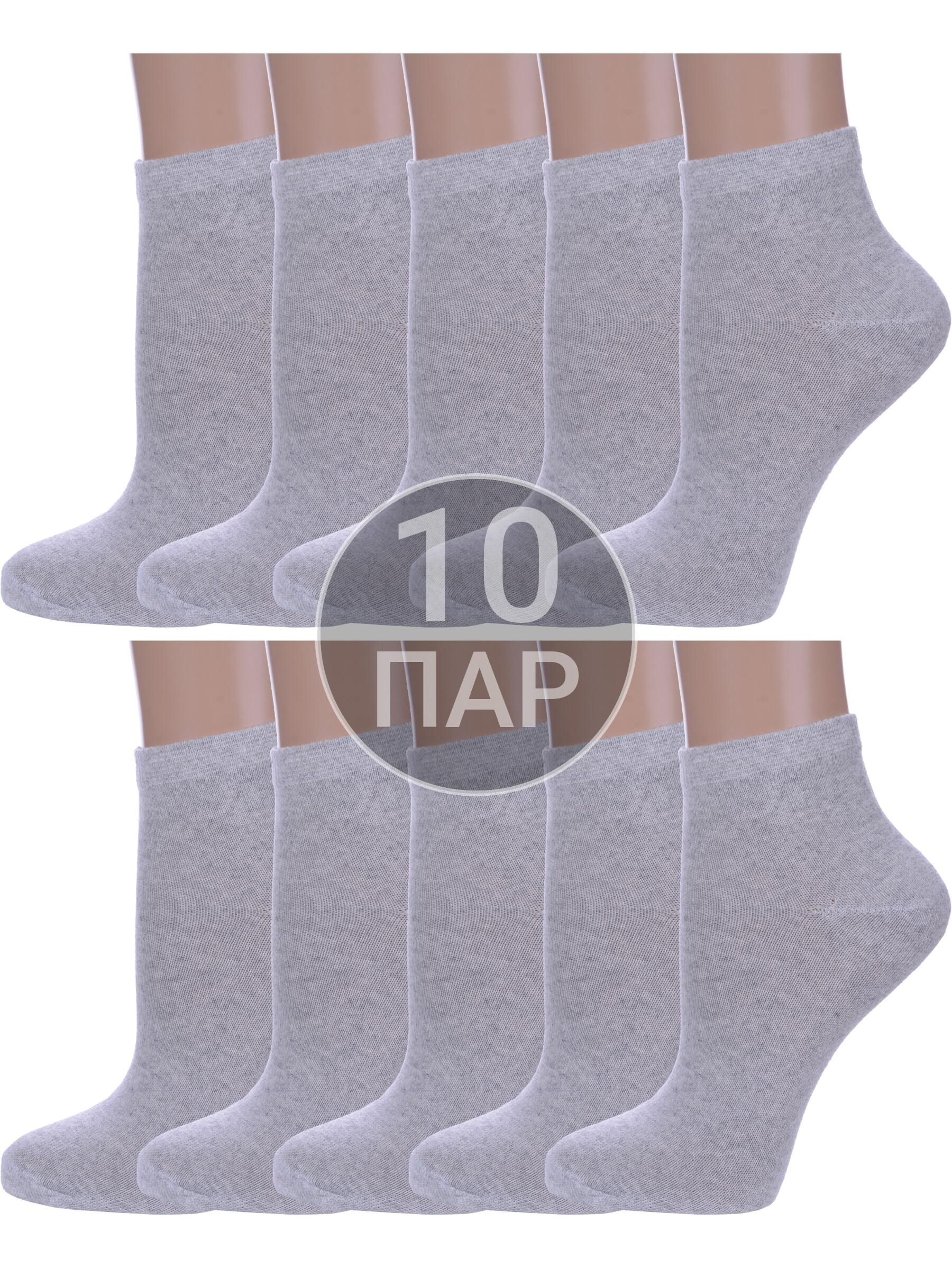 Комплект женских носков из 10 пар, летние, короткие, цвет светло-серый, классические, шов обычный (не бесшовные), принт (рисунок): без рисунков/узоров, состав: 75% хлопок, 23% полиамид, 2% эластан, арт. 10-А61. Производитель «ООО Альтаир, г. Орск, Оренбургская обл, Россия» под брендом «Альтаир».