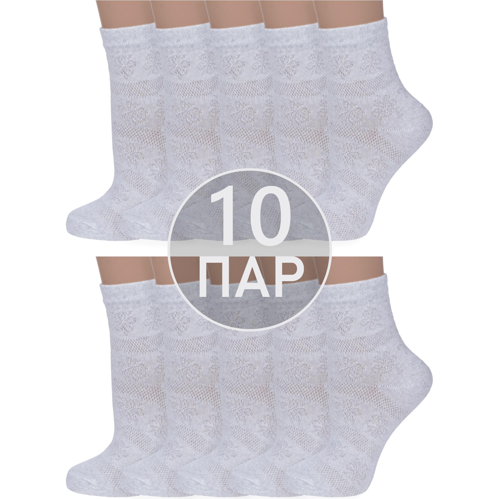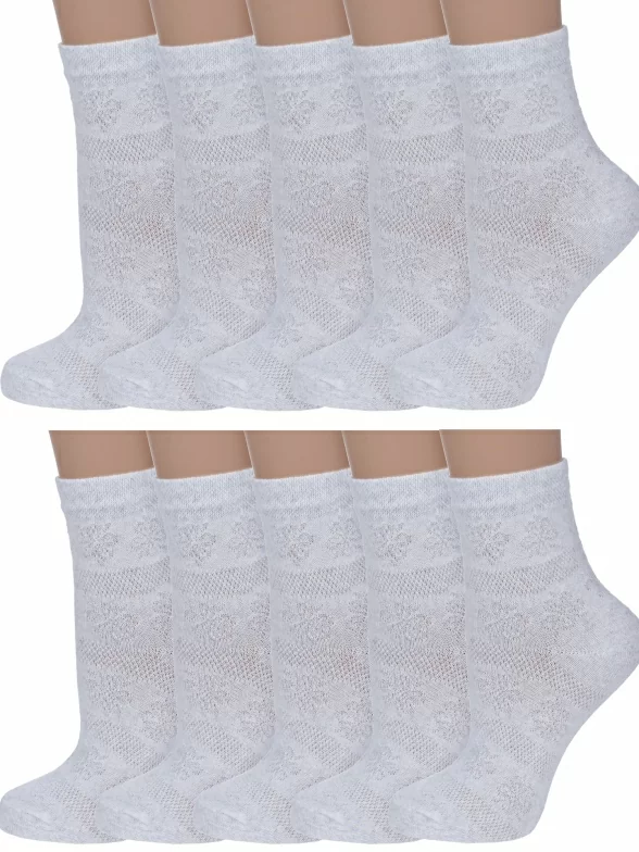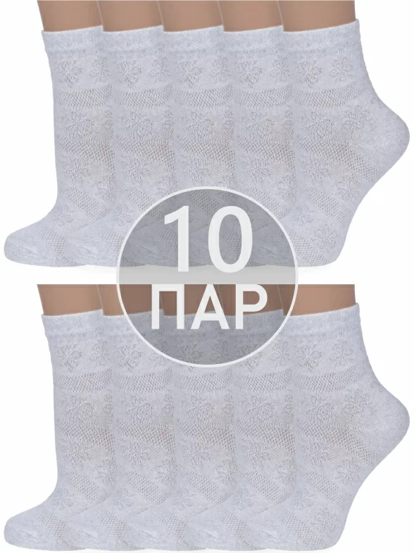 Комплект женских носков из 10 пар, летние или круглогодичные, укороченные, цвет светло-серый, повседневные, в сеточку, шов обычный (не бесшовные), принт (рисунок): цветы / растения, кружево (или имитация), с узором, состав: 80% хлопок, 18% полиамид, 2% эластан, арт. 10-С117. Производитель «ООО Альтаир, г. Орск, Оренбургская обл, Россия» под брендом «Альтаир».