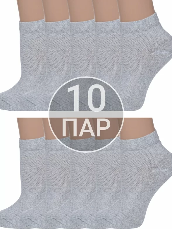 Комплект женских носков из 10 пар, летние, короткие, цвет светло-серый, в сеточку, состав: 80% хлопок, 18% полиамид, 2% эластан, фабричный артикул 10-С82. Производитель «ООО Альтаир, г. Орск, Оренбургская обл, Россия» под брендом «Альтаир».