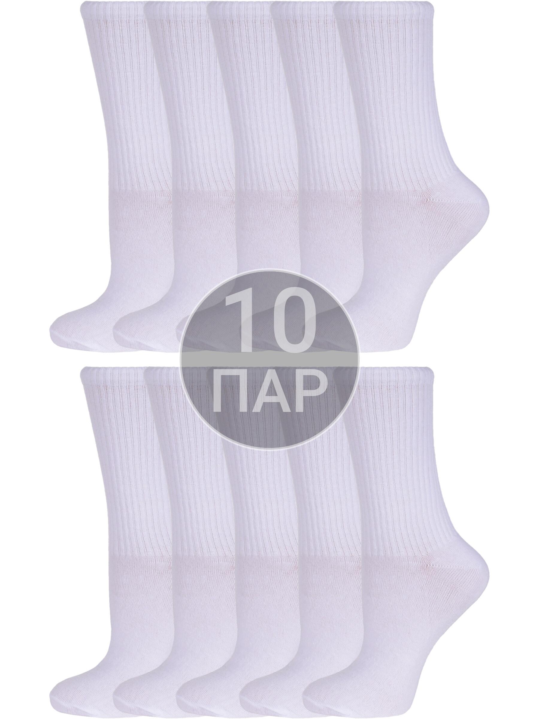 Комплект женских носков из 10 пар, летние или круглогодичные, средней длины, цвет "белый", спортивные, классические, шов обычный (не бесшовные), принт (рисунок): в рубчик, однотонный, без рисунков/узоров, состав: 90% хлопок, 7% полиамид, 3% эластан, арт. 10-L34ж. Производитель «ЧЕЛНЫ ТЕКСТИЛЬ» Россия под брендом «Челны текстиль».
