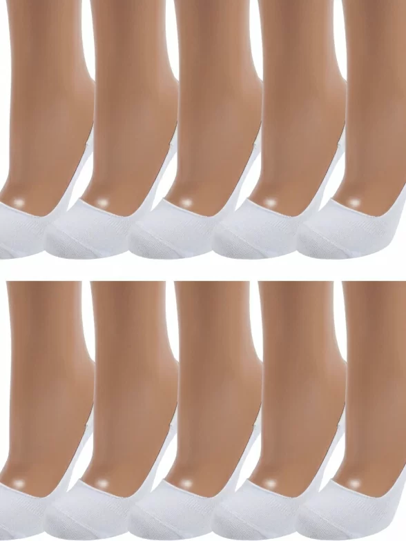 Комплект женских подследников из 10 пар, летние, цвет белый, классические, шов плоский, принт (рисунок): без рисунков/узоров, однотонный, состав: 80% хлопок, 15% полиамид, 5% эластан, арт. 10-SG-1301. Производитель «ХОХ» Россия под брендом «Хох».